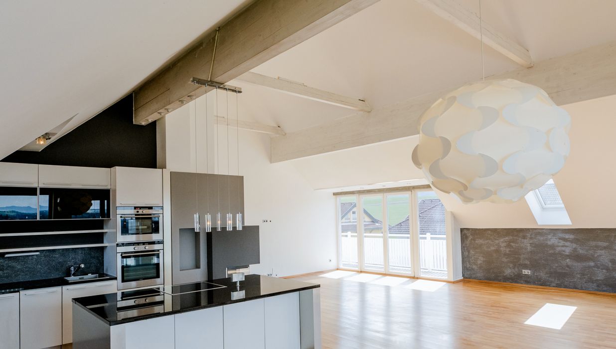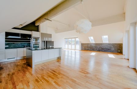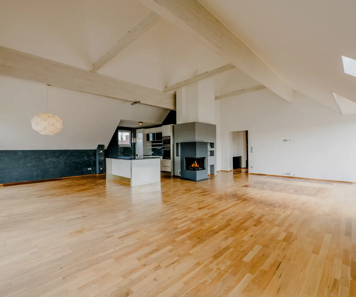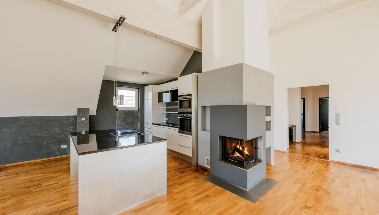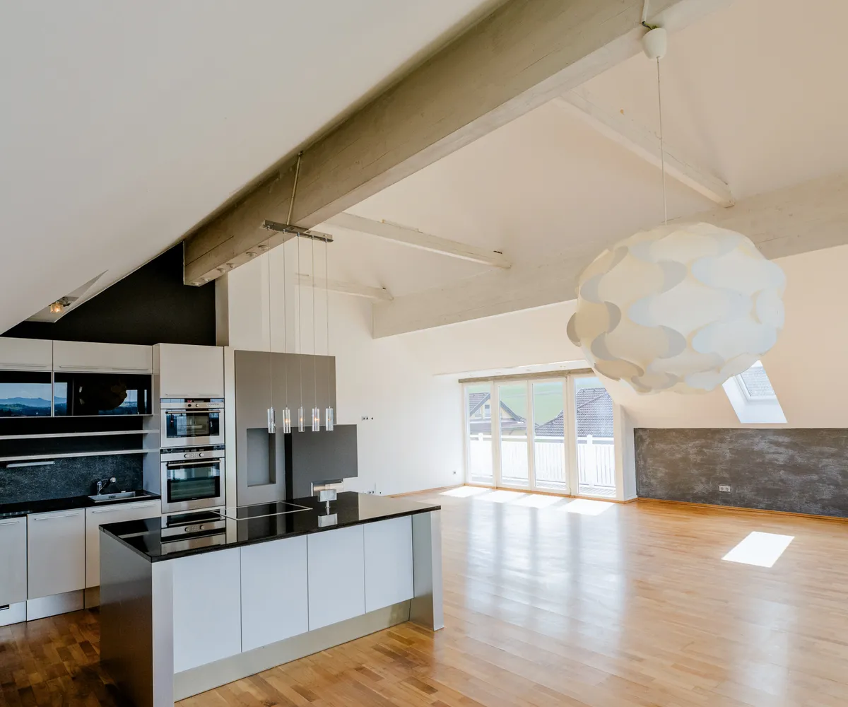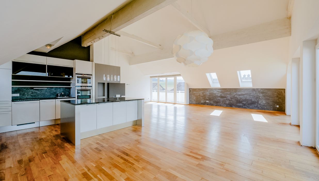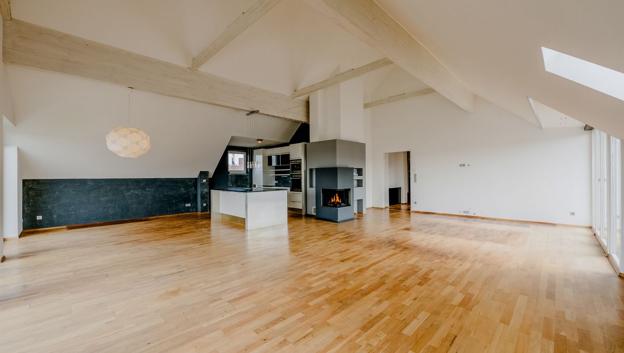 Besonders beeindruckend ist der weitläufige Wohnbereich mit einer atemberaubenden Deckenhöhe von über 5 Metern, der eine unvergleichliche Großzügigkeit vermittelt.