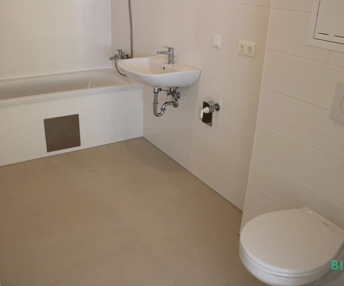 Alle Sanitärelemente sind Fabrikate der Firma Vigour. Badewanne, Waschtische und WC sowie Anschlüsse für Waschmaschine sind vorhanden.