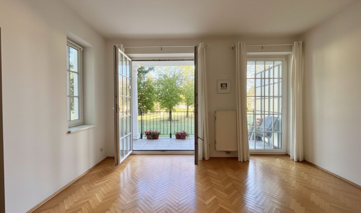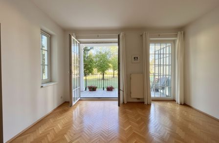 Ihre eigene Stilvolle Villa-Wohnung erreichen Sie danach in wenigen Minuten zu Fuß: charmant, mit einem Hauch amerikanischer Eleganz, ruhig gelegen und Blick ins Grüne. Ein unverwechselbarer Rückzugsort mit einzigartiger Wohnatmosphäre/Villenviertel.