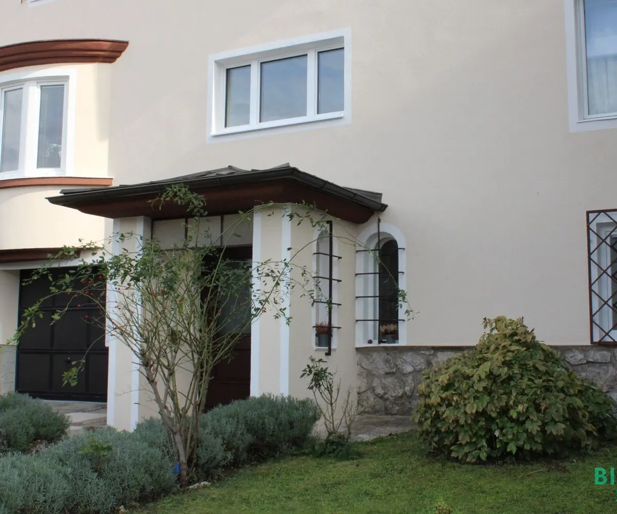 Sowohl über die Garage als auch über den einladenden und robusten Villeneingang, befindet sich ein großzügiger Eingangsbereich bzw. Stiegenhaus-Aufgang, der zu zwei Etagenwohnungen und dem Dachboden führt. Im 1. Stock gelegen, betritt man den entzückenden und großzügigen Vorraum der Wohnung, von dem aus, so gut wie alle Räume, bis auf einen, zu erreichen sind. Zur Linken befindet sich das Turmzimmer - welches dank der wunderbaren Fensterrundung und dem herrlichen Weitblick diesen Namen erhalten hat – von dem aus ein weiteres und sehr gemütliches Kaminzimmer und von diesem aus noch ein weiters entzückendes Gartenzimmer mit Ausgang zum Vorraum zu erreichen sind. Zur Rechten befinden sich des Weiteren noch eine liebevolle Küche mit einer kleinen Speis, ein separates WC, ein kleines,-feines Badezimmer mit Wanne und dem Verandazimmer mit Ausgang in den bezaubernden Garten.