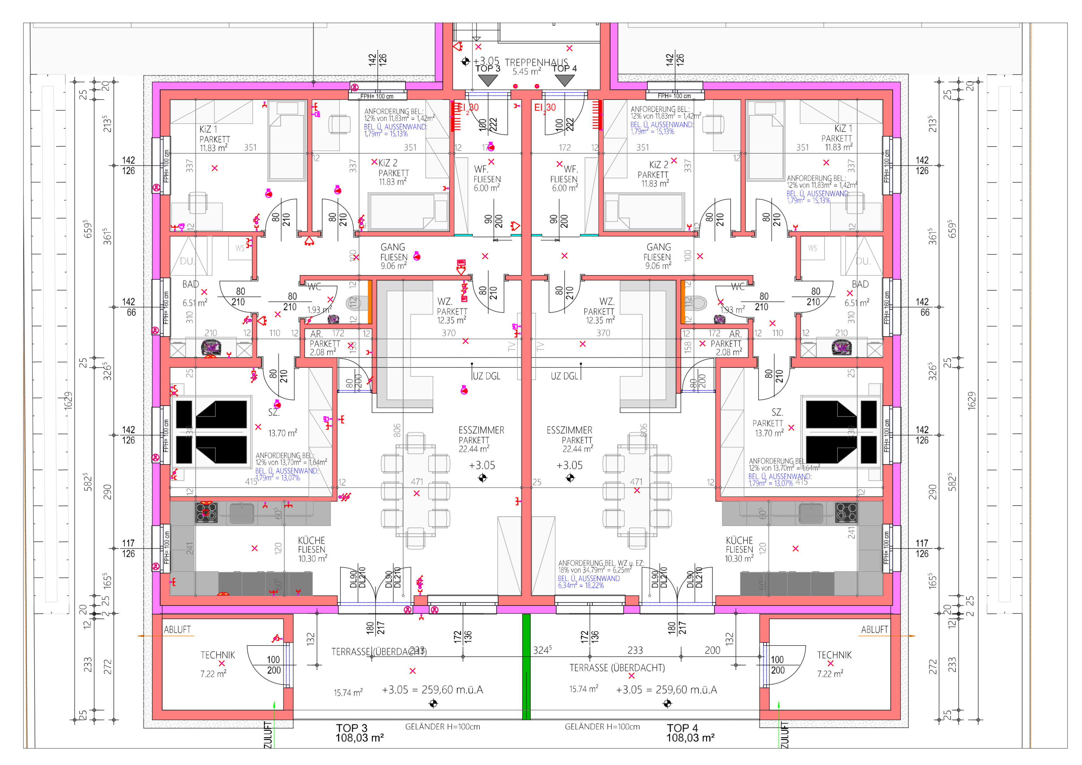 * Schallschutzwände zwischen den Wohnungen