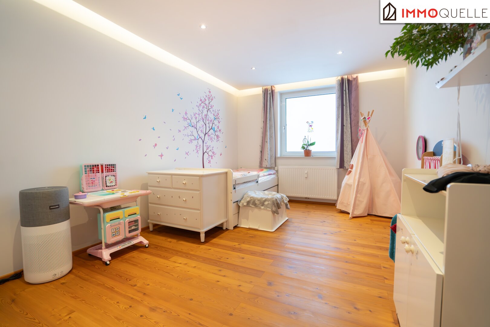 Ein weiteres Highlight ist die unsichtbar integrierte Klimaanlage. Das Gerät selbst ist dezent in der Loggia untergebracht, die kühle Luft gelangt über schmale Lüftungskanäle nahezu geräuschlos in den Wohnbereich - eine technische Lösung, die Komfort und Ästhetik auf unaufdringliche Weise vereint.