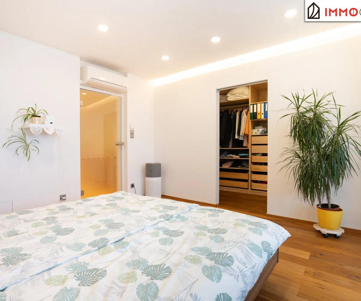 Ein weiteres Highlight ist die unsichtbar integrierte Klimaanlage. Das Gerät selbst ist dezent in der Loggia untergebracht, die kühle Luft gelangt über schmale Lüftungskanäle nahezu geräuschlos in den Wohnbereich - eine technische Lösung, die Komfort und Ästhetik auf unaufdringliche Weise vereint.
