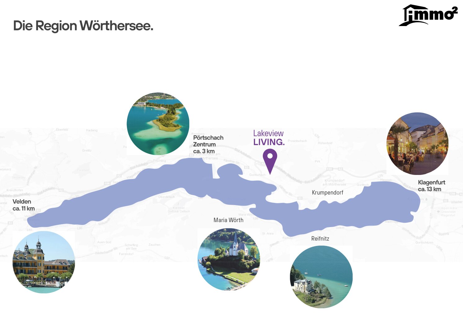 Nur wenige Schritte vom See entfernt, fügt sich Lakeview LIVING harmonisch in die idyllische Umgebung ein – mit moderner Architektur, großzügigen Außenflächen und hohem Anspruch an nachhaltiges Wohnen. Das nahegelegene Strandbad Sallach sowie das Freibad Pritschitz sind fußläufig erreichbar, ebenso wie der örtliche Bahnhof – mit Direktverbindungen nach Klagenfurt, Villach oder über die Grenzen hinaus nach Italien und Slowenien.