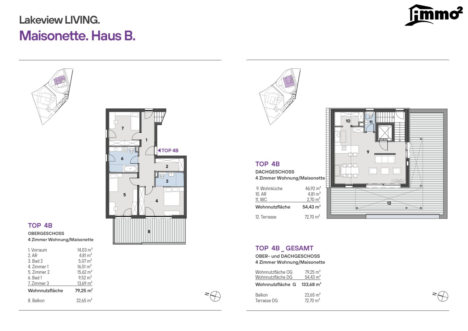 TOP 4B | Maisonette | Wohnnutzfläche: ca. 133,68 m² | Balkon: ca. 22,65 m² | Terrasse: ca. 72,70 m² | ab 1.153.200 €