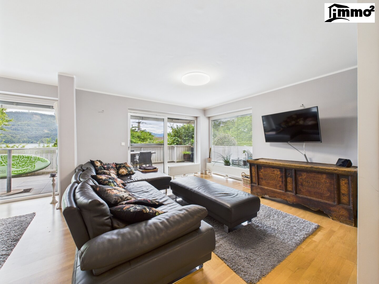 Die Wohnung befindet sich im Erdgeschoss (Hochparterre) und vereint Großzügigkeit mit einer durchdachten Raumaufteilung . Besonders hervorzuheben ist die ca. 39 m² große Terrasse, die sich entlang der Südseite erstreckt und Ihnen einen herrlichen Blick auf den See und die dahinter liegende Bergwelt bietet. Der Wohnbereich ist hell, weitläufig und bietet Zugang zur Terrasse.