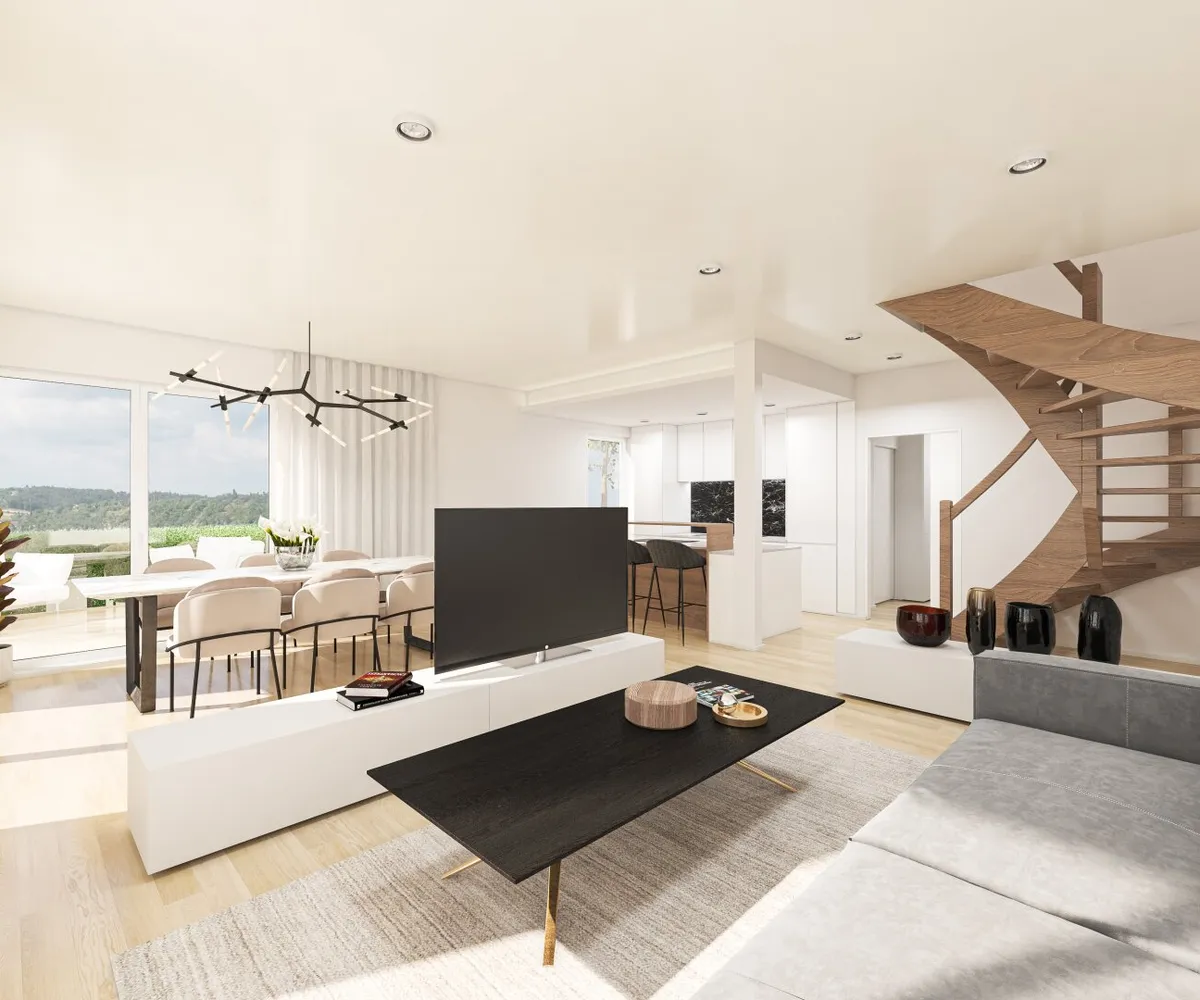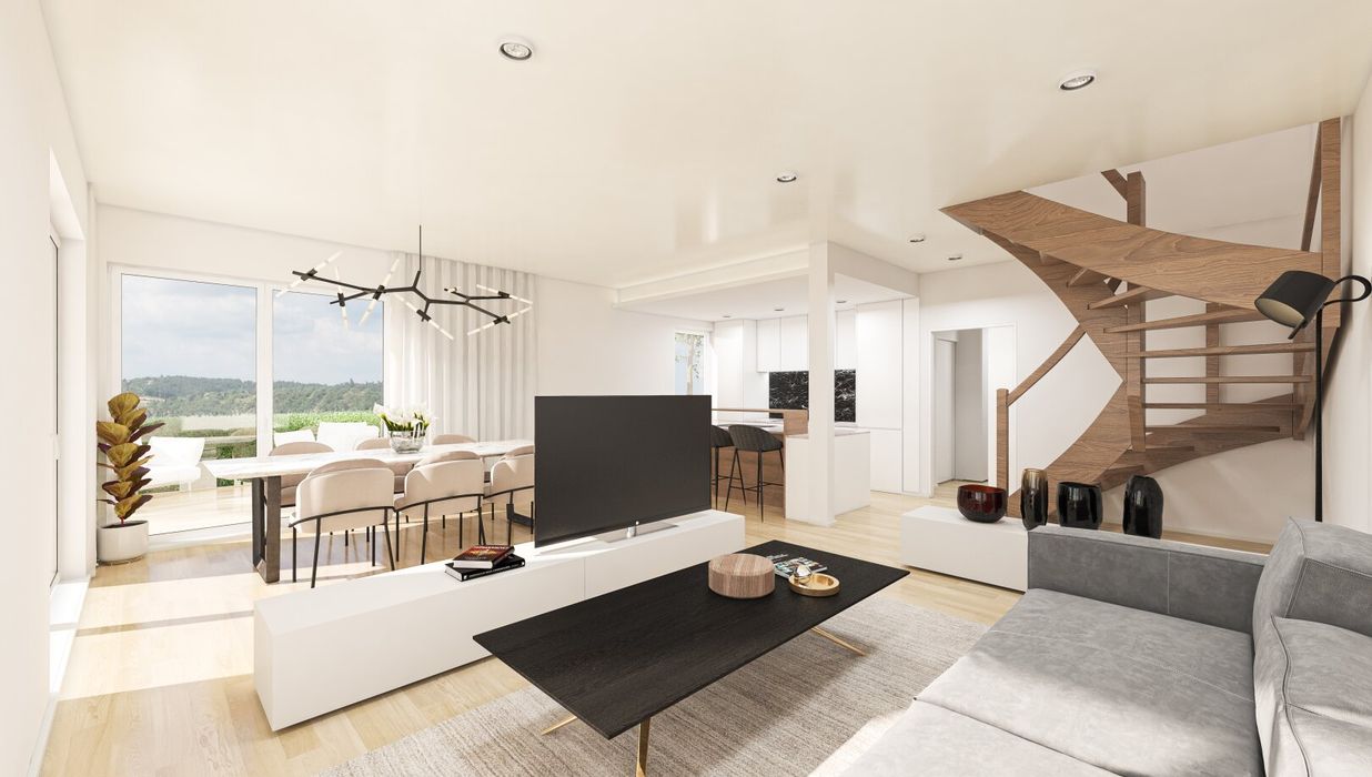 Die südseitig ausgerichteten Doppelhäuser werden in umweltschonender und energieeffizienter Massivholzbauweise errichtet. Geheizt wird mit einer Wärmepumpe. Die Energiewerte entsprechen dem Gold Standard. Bei den Fenstern handelt es sich um hochwertige 3-fach verglaste Kunststoff-Alu-Fenster. Es werden durchwegs nur hochwertigste Materialien verwendet, um maximale Qualität und Wohngenuss zu erzielen. Alle Doppelhaushälften verfügen über fünf geräumige Zimmer. Im Erdgeschoß befinden sich eine große Wohnküche, ein Wirtschaftsraum, ein WC, ein Technikraum sowie ein Vorraum. Aus dem Wohnzimmer gelangt man über eine