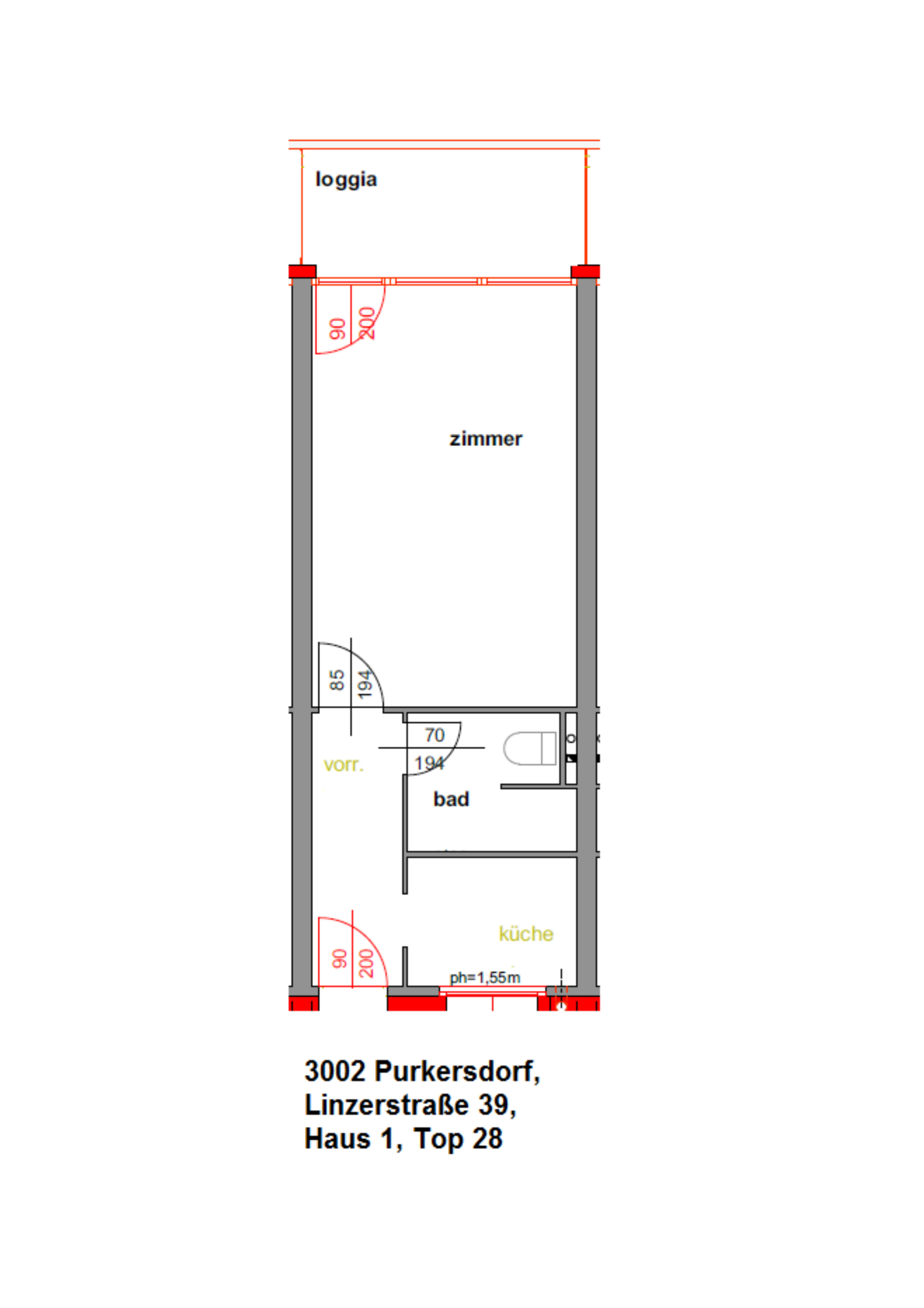 Die Wohnung liegt in der Linzerstraße in Purkersdorf , nahe dem Gablitzbach – ein ruhiges und grünes Umfeld mit allen Vorteilen der Kleinstadt: