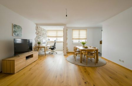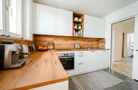 Herzstück der Wohnung ist der großzügige Wohn- und Küchenbereich (neuwertige Einbauküche vorhanden) mit vorbereiteter Kaminvorrichtung – perfekt für gemütliche Abende. Von hier aus gelangen Sie in den rund 4 m² großen Wintergarten, der den Wohnraum harmonisch erweitert. Bei Bedarf kann dieser wieder zu einem klassischen Balkon rückgebaut werden – maximale Flexibilität ganz nach Ihren Wünschen.