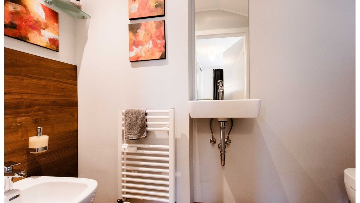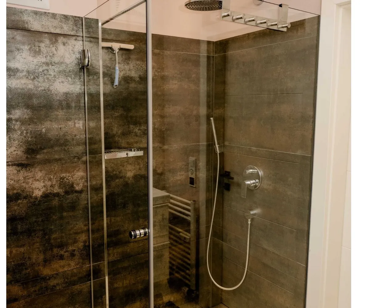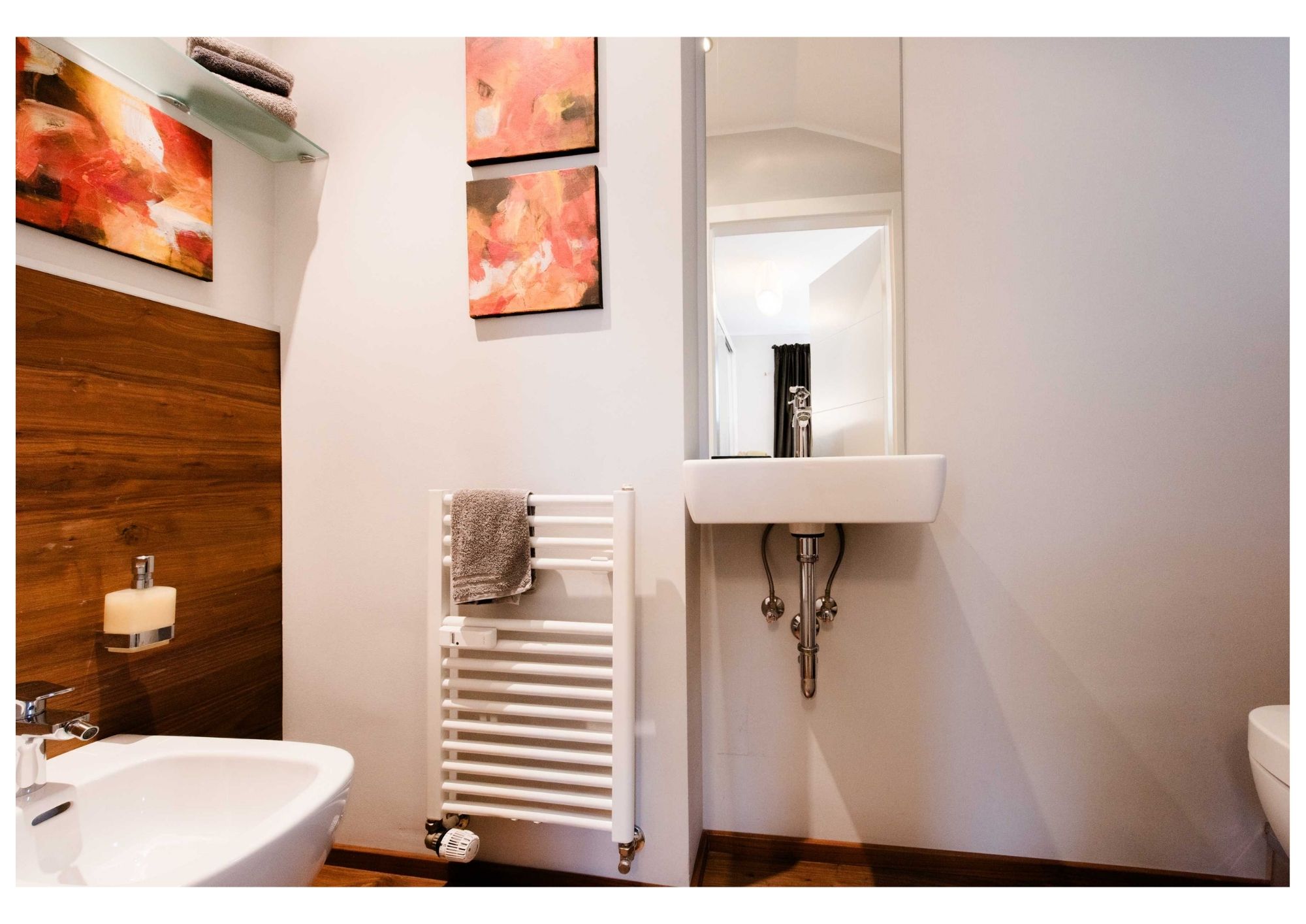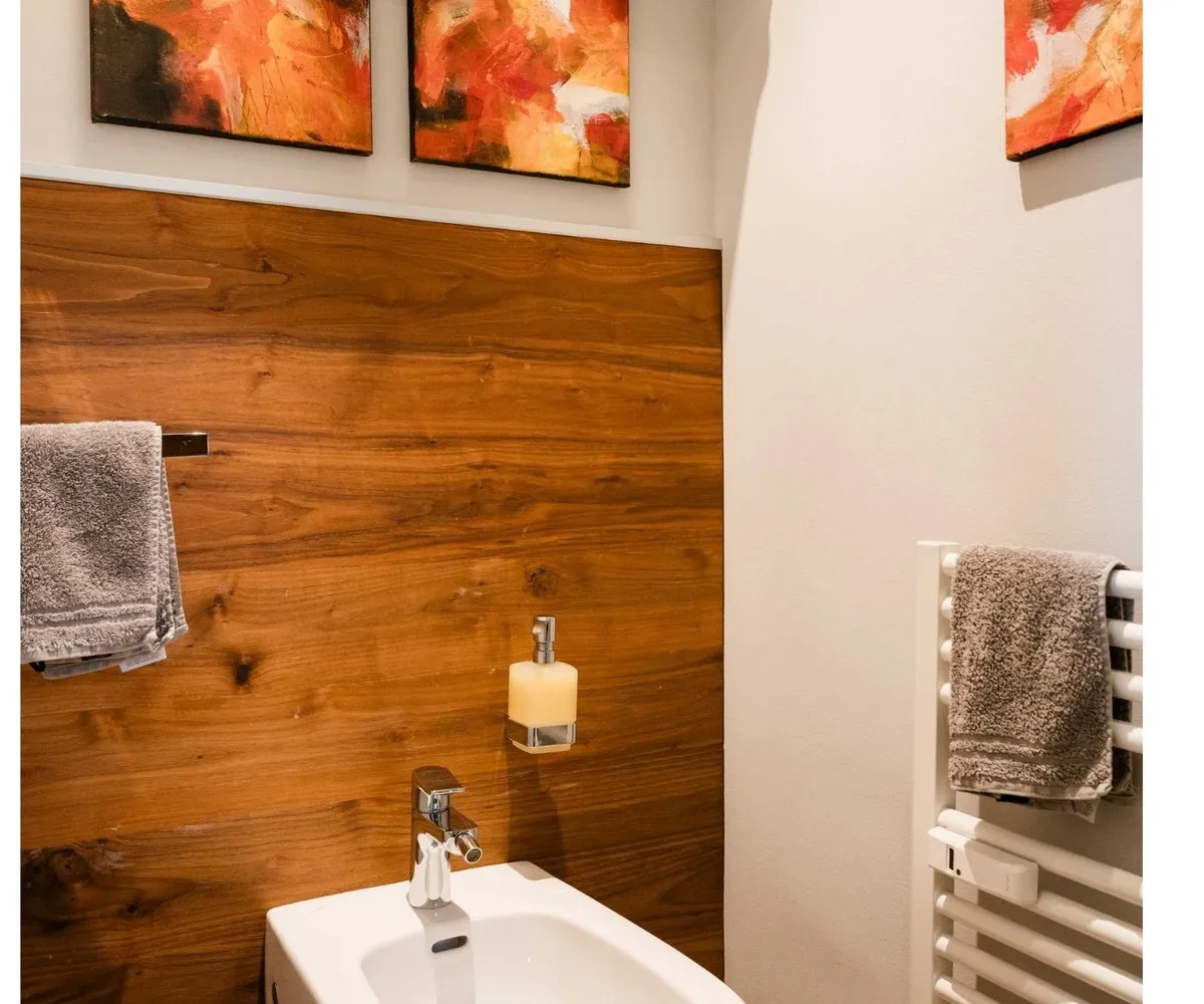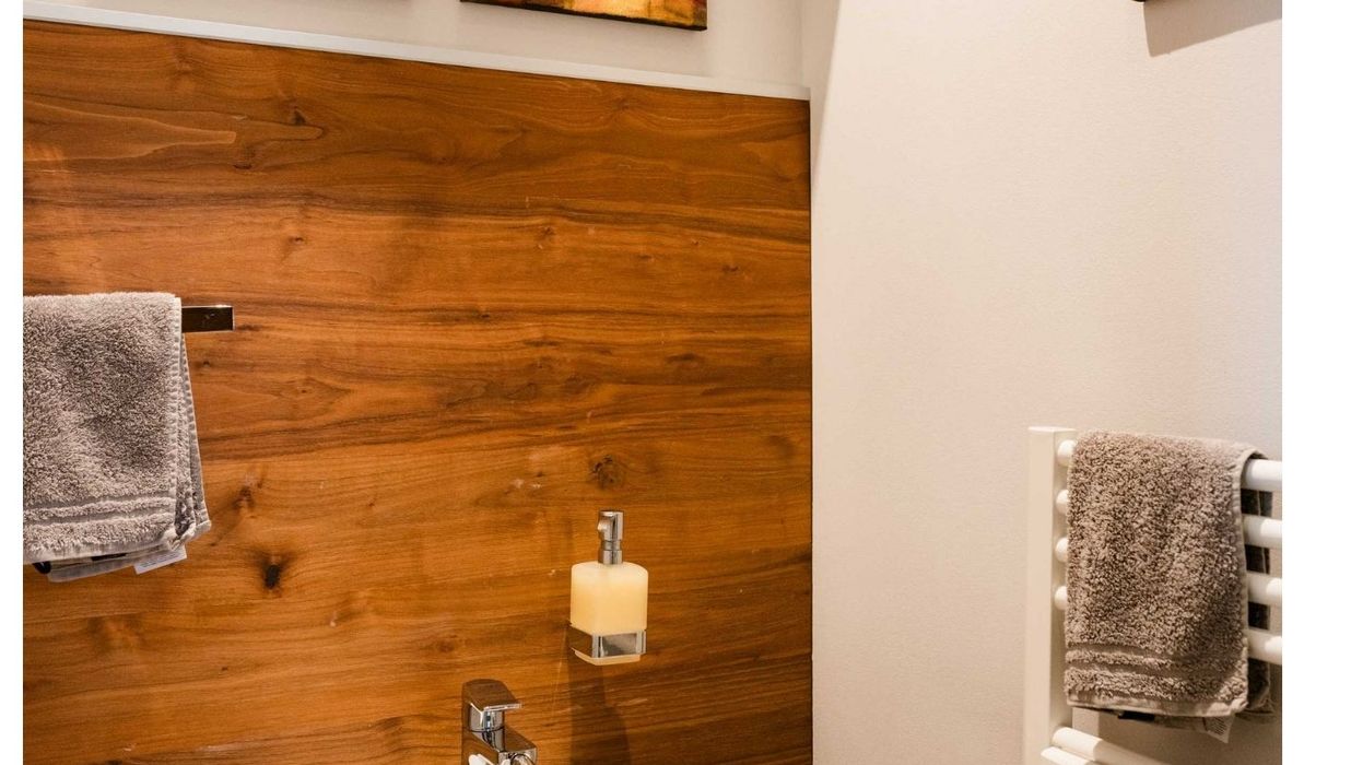 Das Hauptschlafzimmer mit raumhohen Einbauschränken bietet entspannte Ruhe, ergänzt durch ein weiteres Schlafzimmer mit Einbauschranksystem. Das elegante Badezimmer lässt keine Wünsche offen: Doppelwaschtisch mit Zirbenholz-Unterschrank, Badewanne, separate Dusche und stilvolle Beleuchtung schaffen eine private Wellnesszone. Ein Gäste-WC, ein helles Hobbyatelier sowie ein separates Arbeitszimmer erweitern das Raumangebot ideal für Homeoffice, Gäste oder kreative Nutzung.