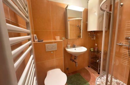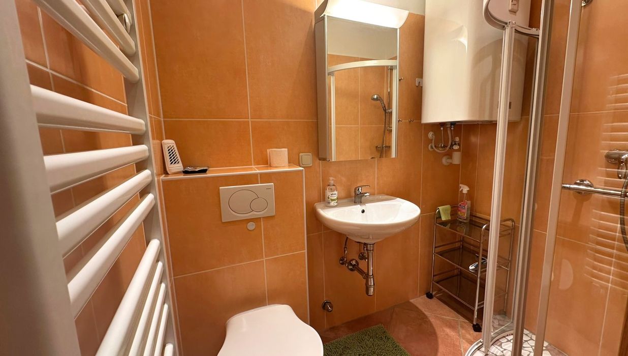 Sie kommen vom Stiegenhaus direkt in einen kleinen Vorraum. Hier ist Platz für Garderobe/Schuhschrank – funktional, aber eher kompakt.