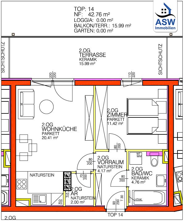 - Komplettküche inkl. E-Geräten mit Abstellraum
