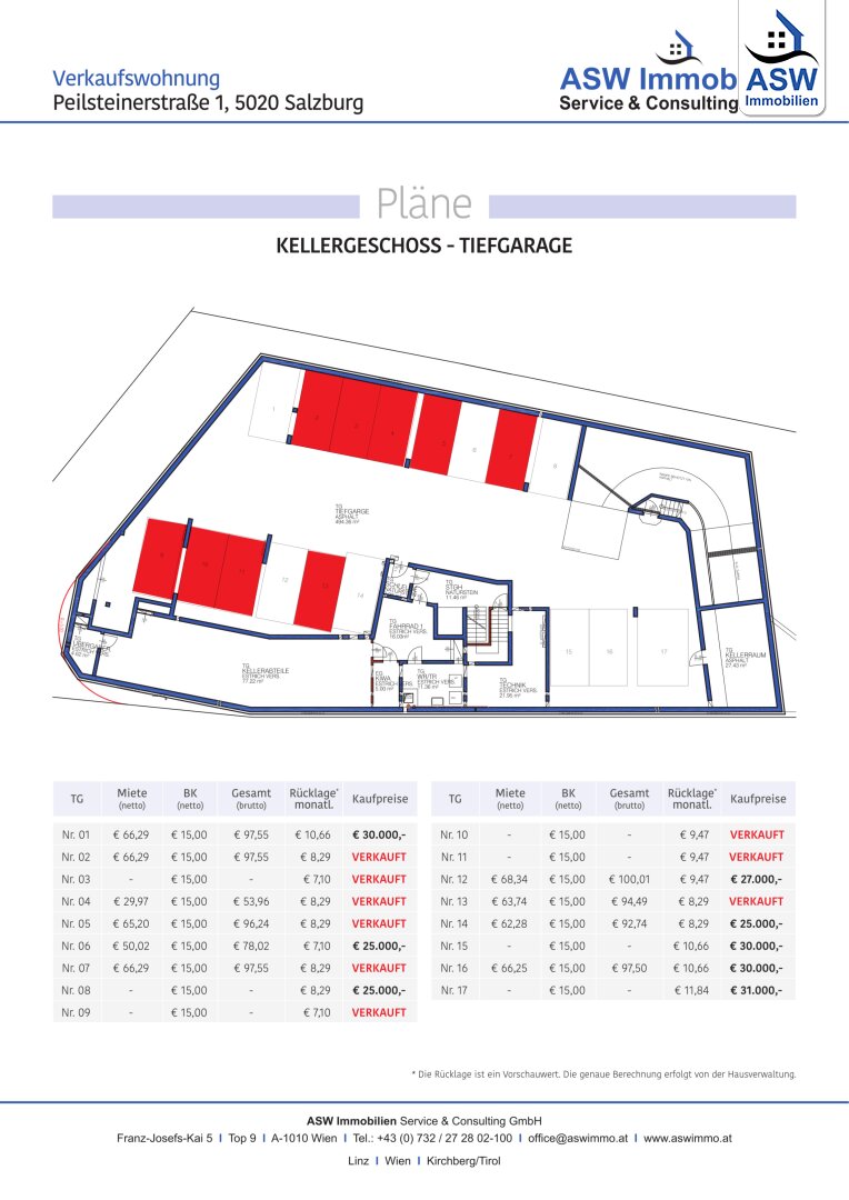 Monatl. Kosten: € 25,20 Betriebskosten + € 11,26 Rücklage