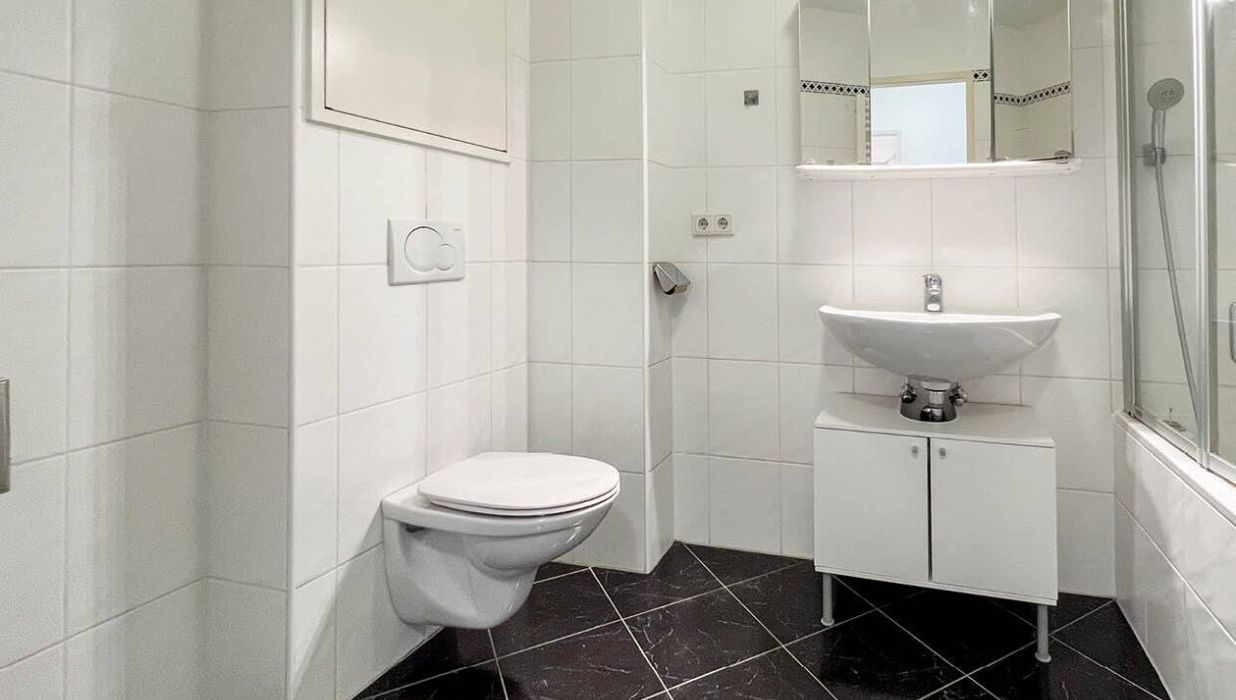 - Badezimmer mit Badewanne, WC und Waschmaschinenanschluss, zusätzliche Toilette