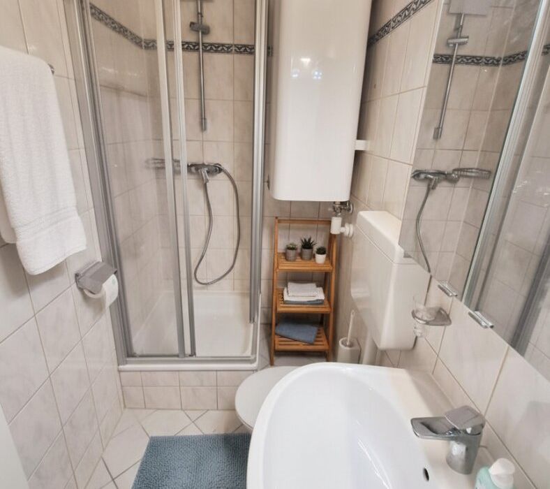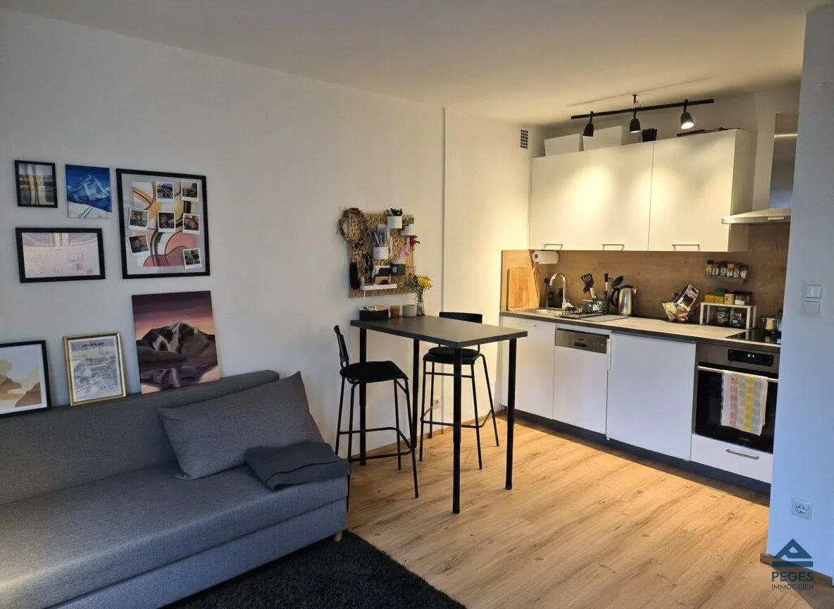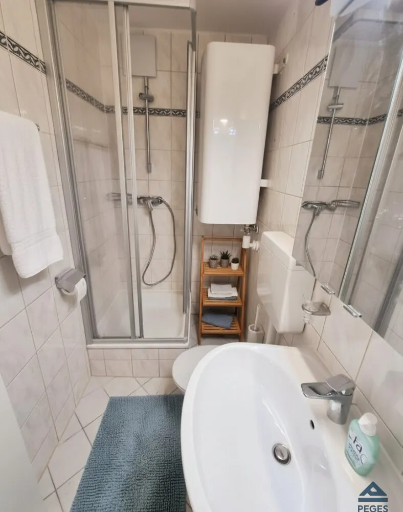 Die Wohnung liegt im 1. Obergeschoss des Hauses (ohne Lift) und verfügt über eine Wohnfläche von 28,80 m² . Die helle Wohnung befindet sich in einem ordentlichen und gepflegten Zustand – mit hellem Laminatboden, modern eingerichtetem Küchenbereich samt Geräten (mit Geschirrspüler, etc), helle Fliesen im Sanitärbereich (mit Dusche/ WC).
