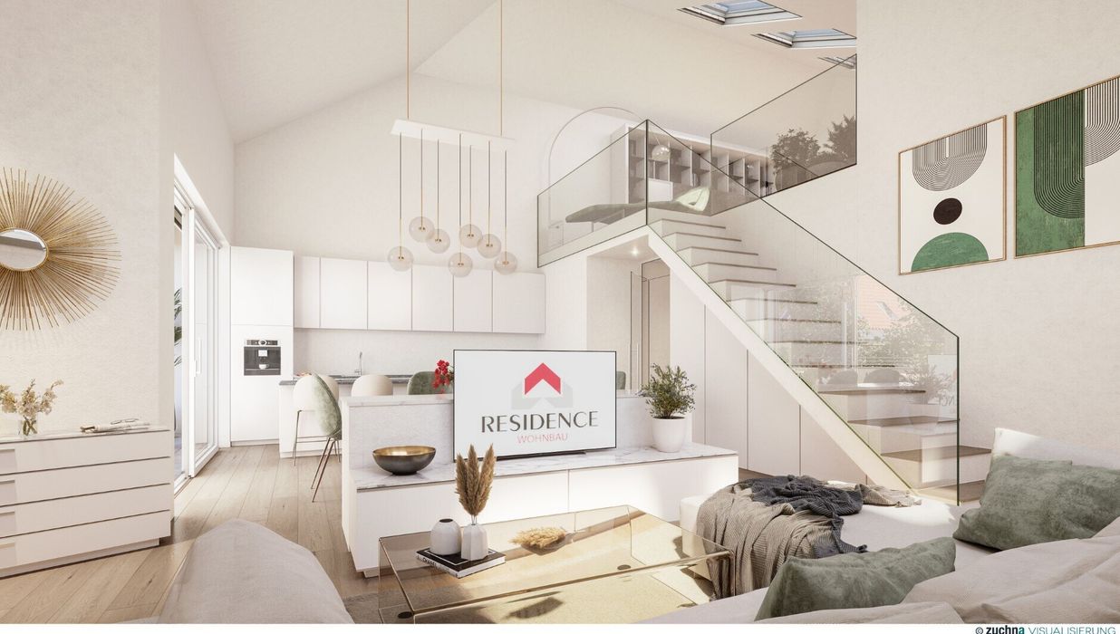 Diese 2-Zimmerwohnung mit Galerie liegt Dachgeschoss. Die ca. 118 m 2 Wohnfläche sind wohldurchdacht angelegt und haben mit Schlafzimmer, Ankleide, Bad, WC, Vorraum, Garderobe sowie dem ca. 49 m 2 großen Wohn/Ess/Kochbereich und der offenen ca. 26 m² großen Galerie alles im Programm, was gutes Wohnen ausmacht. Große Fenster sorgen für eine natürliche und angenehme Wohnatmosphäre. Und wer eine Auszeit unter freiem Himmel genießen möchte, kann sich auf der nach Süden ausgerichteten Terrasse entspannt zurücklehnen. Zum Wohnpaket gehören auch Kellerabteil und Freistellplatz. Die Kosten pro Stellplatz betragen € 20.000,-. Dieses innovative Wohnkonzept überzeugt auf ganzer Linie mit perfekter Raumaufteilung und hohem Wohnkomfort.