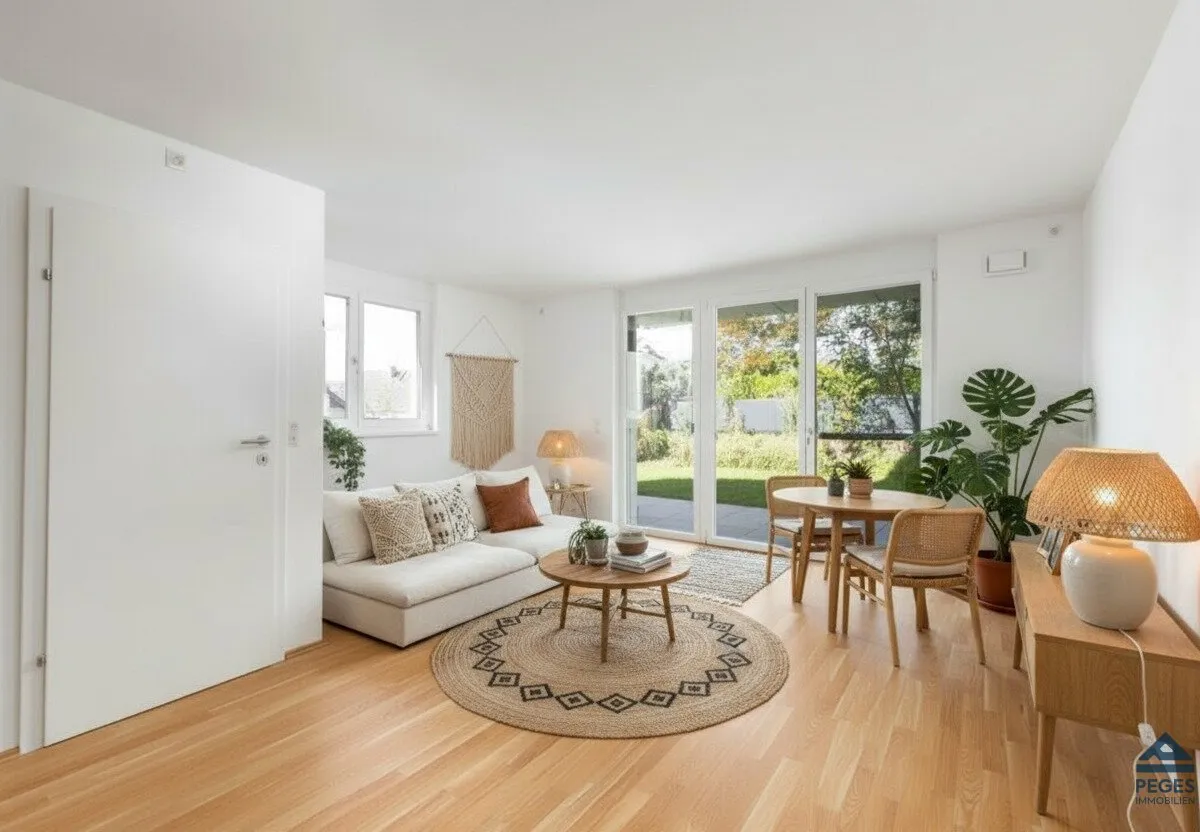 Die 2-Zimmer-Garten-Wohnung verfügt über eine Wohnfläche von ca. 53,60 m² zuzüglich Terrasse mit ca. 10,85 m² und Garten mit ca. 135,51 m² und befindet sich im Erdgeschoss (mit Lift - barrierefrei) eines kürzlich errichteten Wohnhauses (Bezug 2023-01 ). Die erstklassige Ausstattung der Wohnung mit eleganten Bodenbelägen und Fußbodenheizung, geräumigem Sanitärbereich mit Dusche und WC (samt Waschmaschinenanschluss) sowie ansprechender Architektur des gesamten Gebäudes mit guter baulicher Ausführung schaffen eine tolle Wohnatmosphäre .