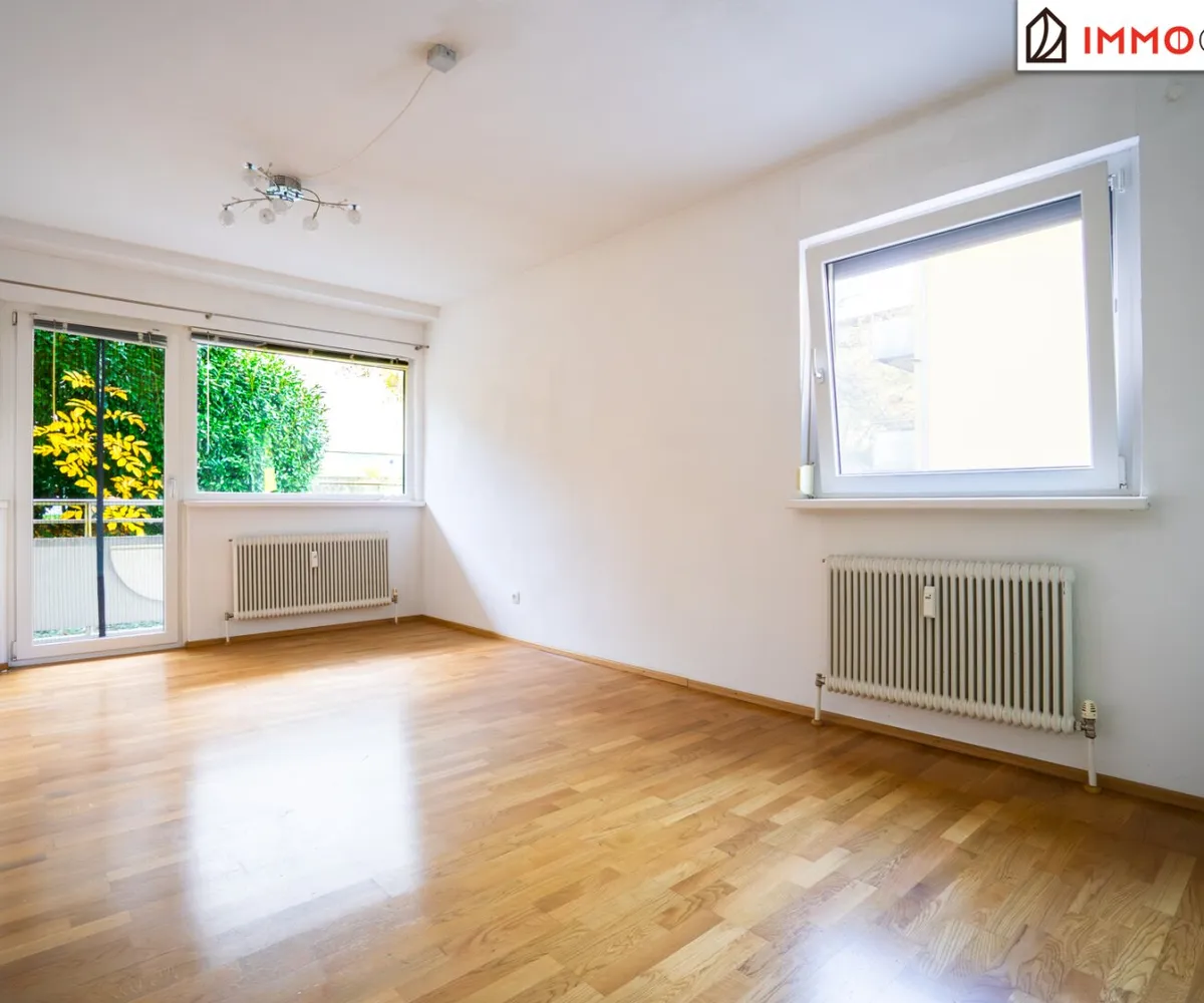 Lichtdurchflutete 2-Zimmer-Wohnung mit Loggia, hochwertigem Parkett und eigener Garage – ruhig, sonnig, zentral.