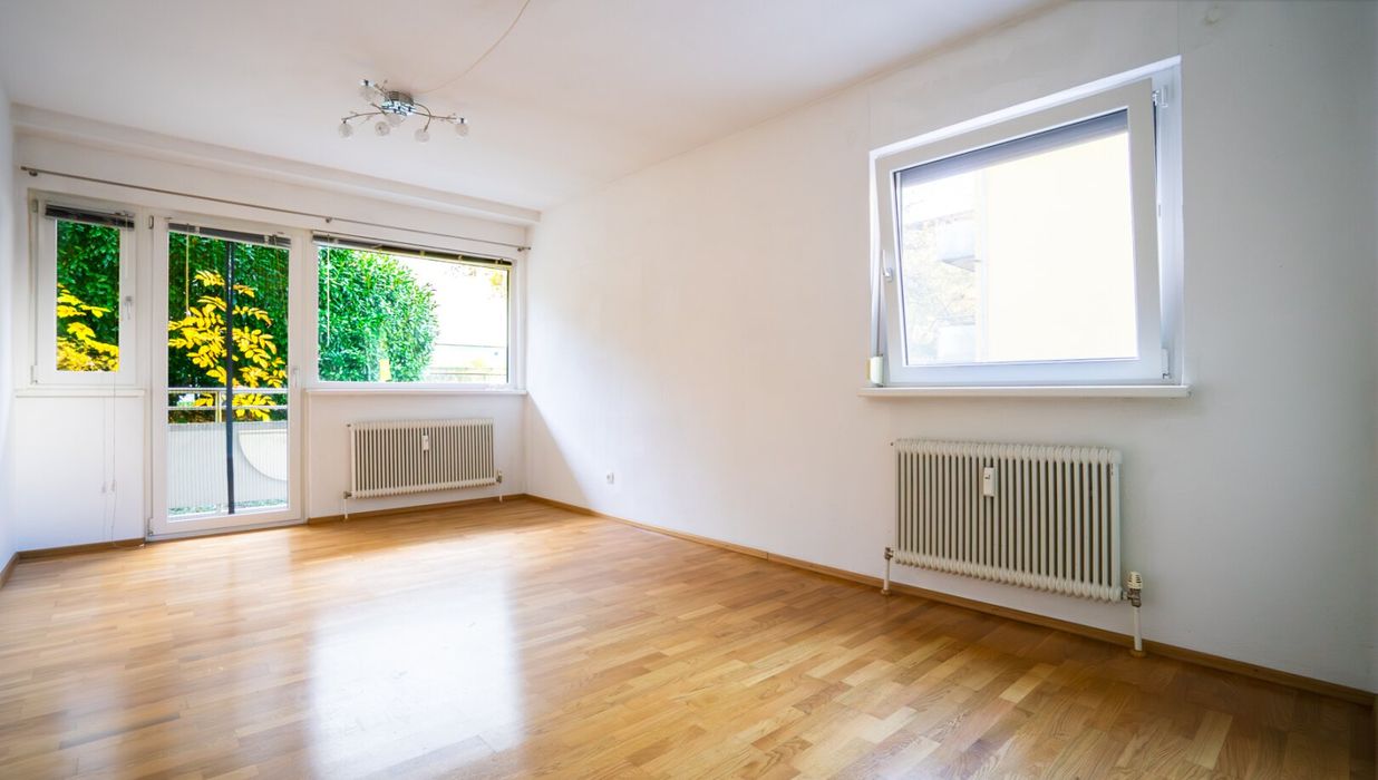 Highlight der Wohnung ist ohne Frage der helle Wohn-Essbereich, der durch seine südöstliche Ausrichtung in den Morgenstunden von Sonne durchflutet wird. Vom Wohnzimmer aus betreten Sie die über 5 m² große Loggia – ein perfekter Ort für Ihren Espresso am Vormittag mit Sonne und Blick ins Grüne. Alle Fenster der Wohnung öffnen sich zu einer ruhigen, natürlichen Umgebung – ein echter Luxus in Stadtnähe.