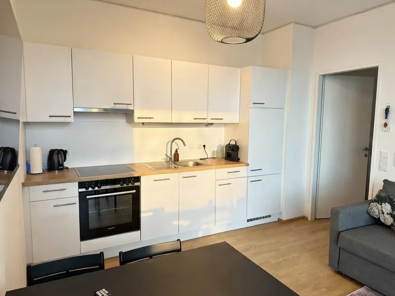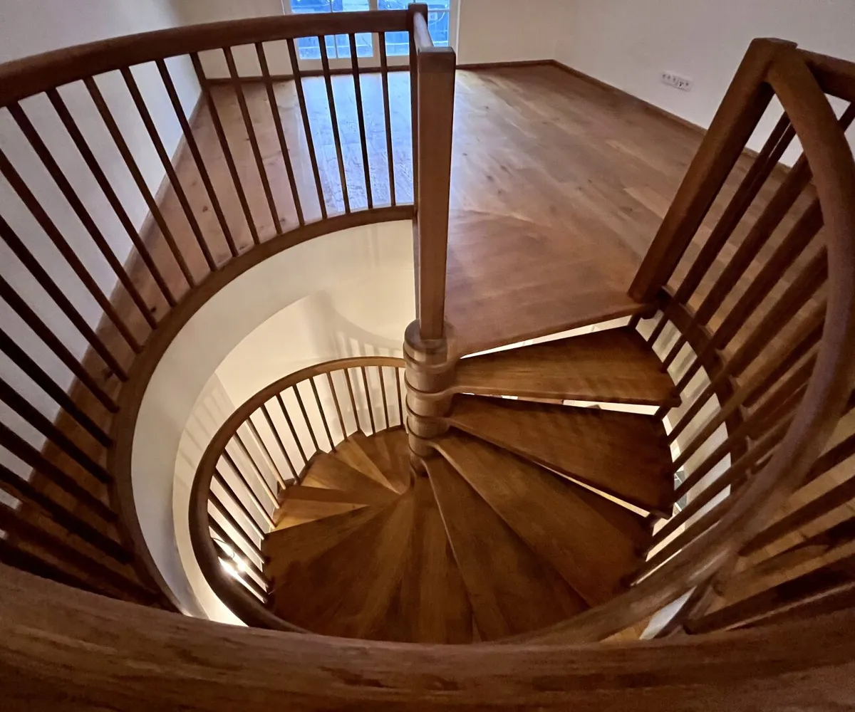 Auf zwei Ebenen bietet sie ein modernes Raumkonzept, das durch eine elegante Wendeltreppe und dunkles Echtholzparkett geprägt ist. Die Wohnung eignet sich ideal für Paare, Berufstätige oder Stadtliebhaber, die das Besondere suchen.