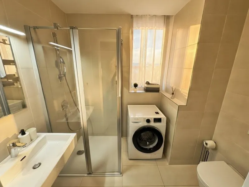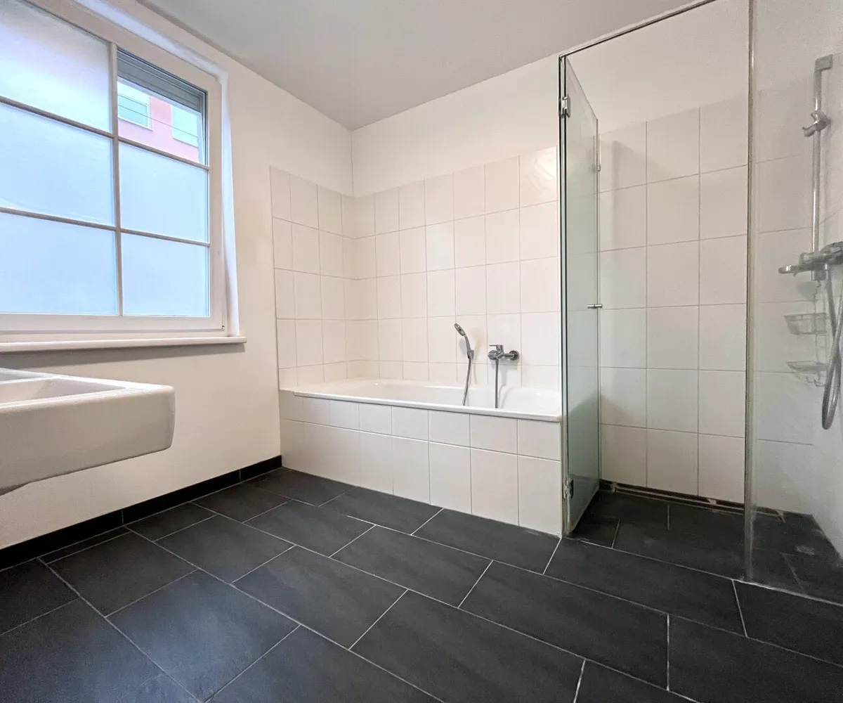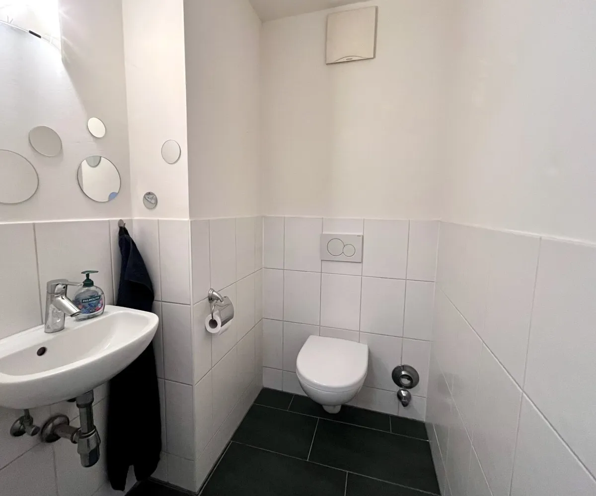 Im unteren Bereich der Wohnung steht ein weiteres Badezimmer mit Dusche und Toilette, sowie ein weiterer Raum zur Verfügung, der sich flexibel als Schlafzimmer oder Homeoffice benutzen lässt.