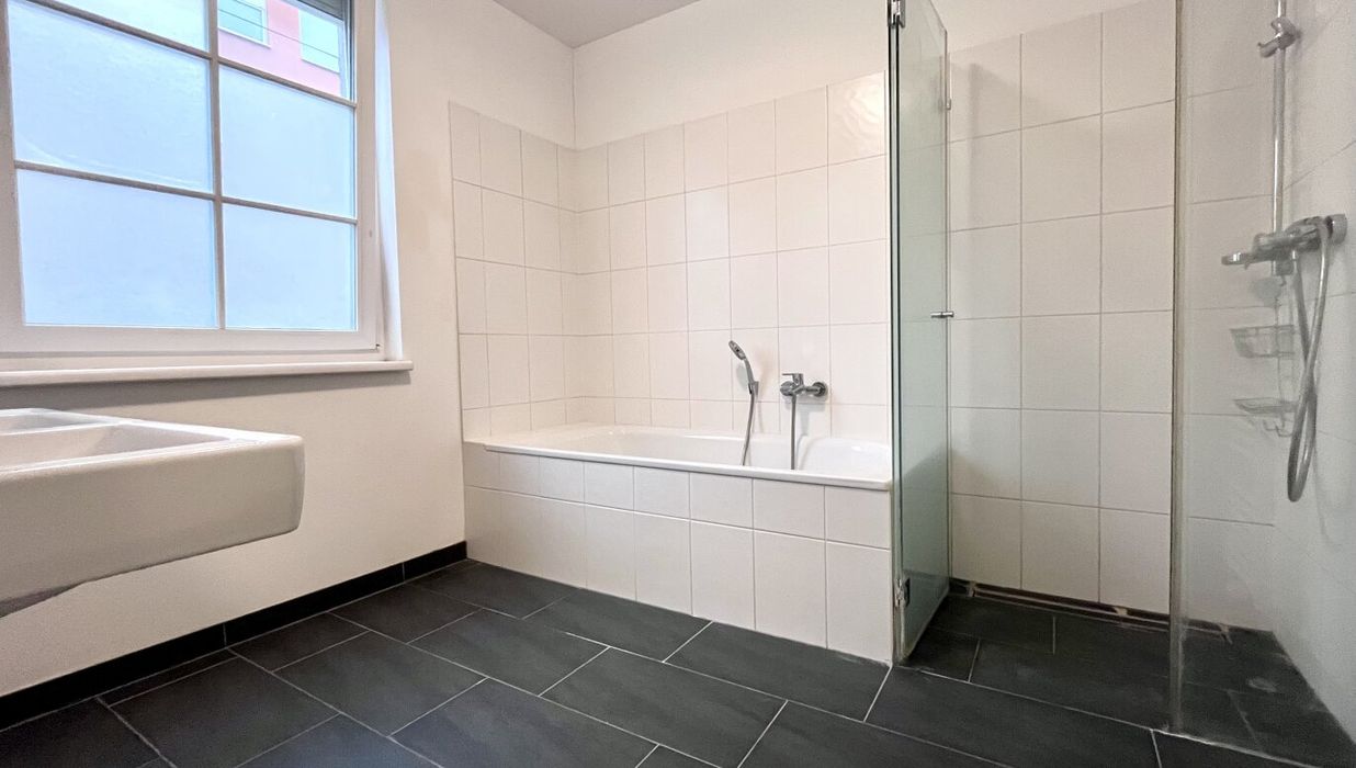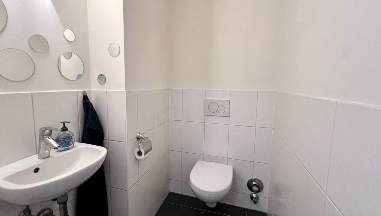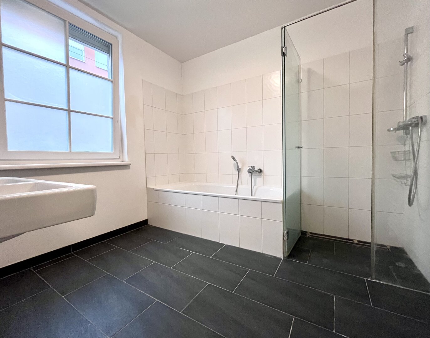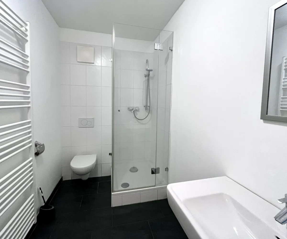 Im unteren Bereich der Wohnung steht ein weiteres Badezimmer mit Dusche und Toilette, sowie ein weiterer Raum zur Verfügung, der sich flexibel als Schlafzimmer oder Homeoffice nutzen lässt.