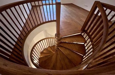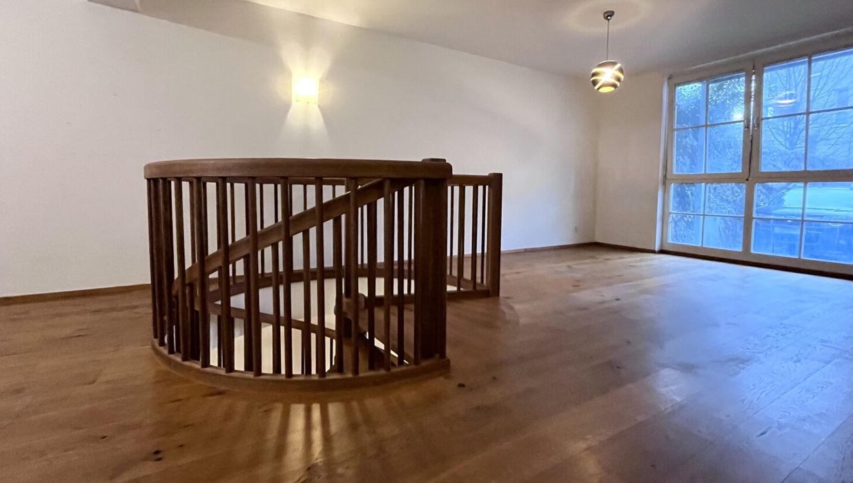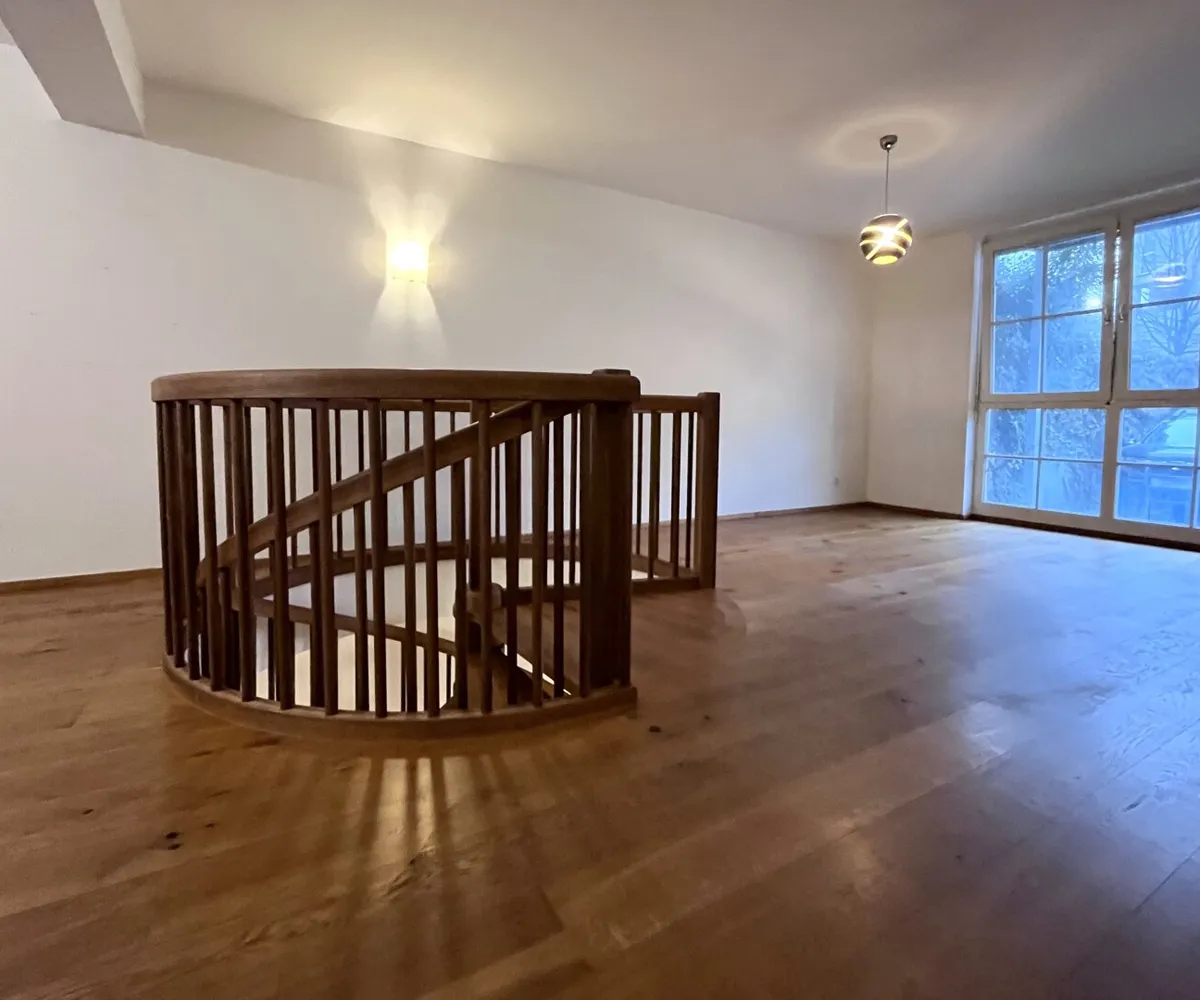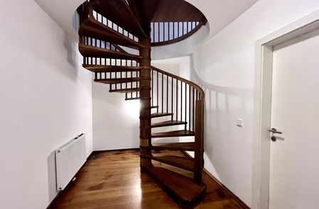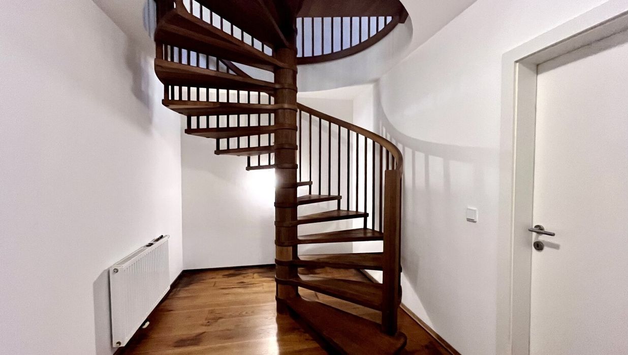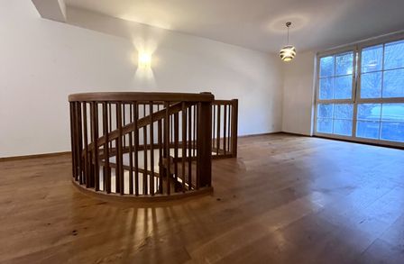Auf zwei Ebenen bietet sie ein modernes Raumkonzept, das durch eine elegante Wendeltreppe und dunkles Echtholzparkett geprägt ist. Die Wohnung eignet sich ideal für Paare, Berufstätige oder Stadtliebhaber, die das Besondere suchen.