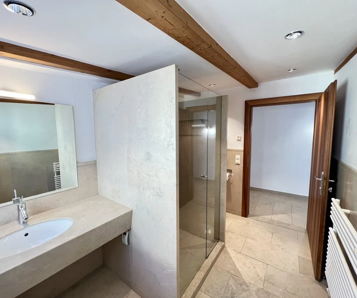 Im Innenhof steht eine Garage für einen Klein- bis Mittelwagen zur Verfügung, sowie ein Außenstellplatz.
