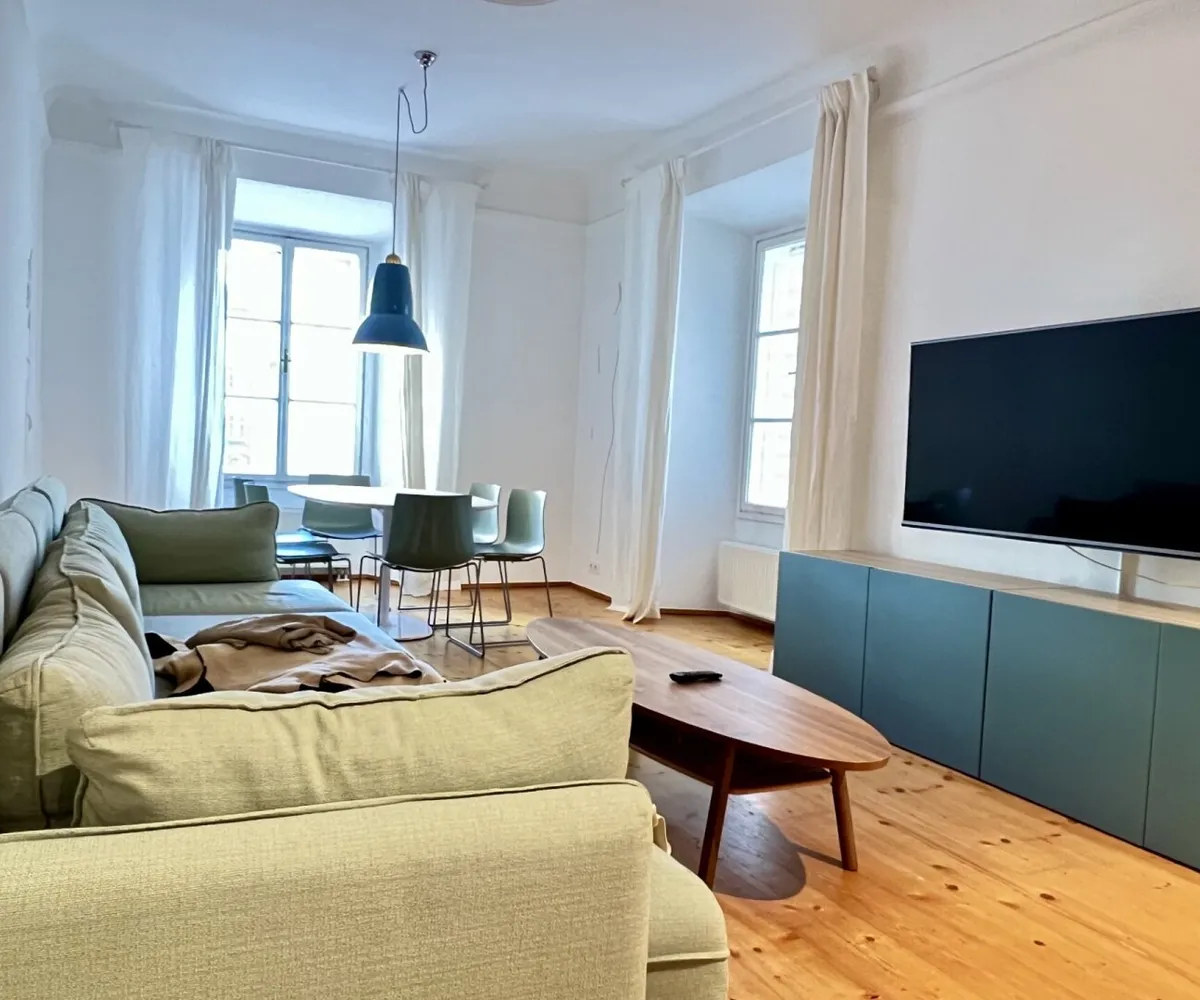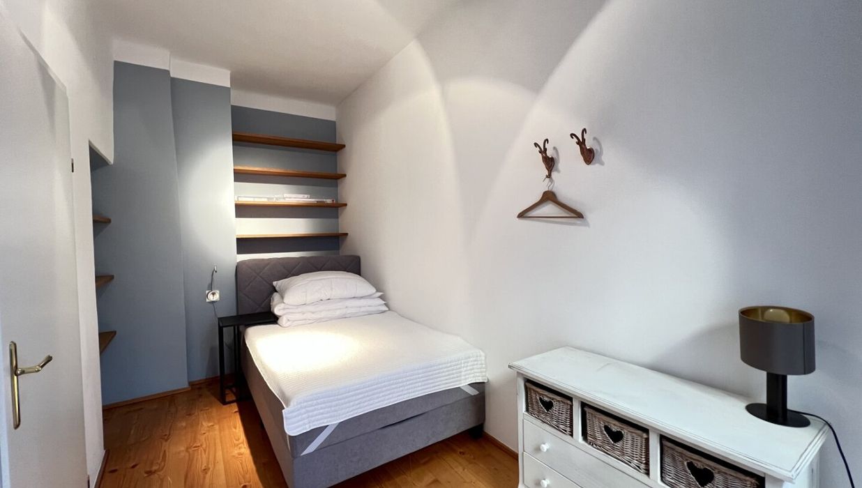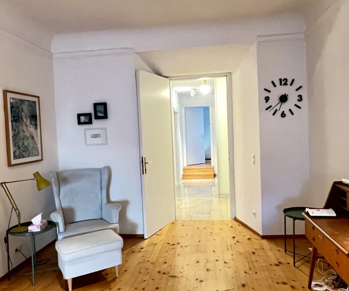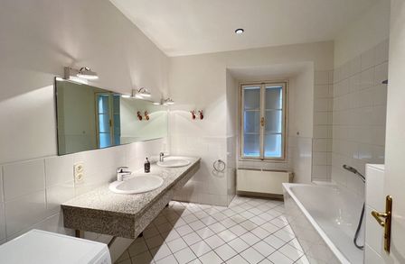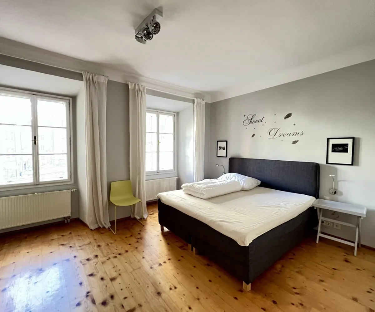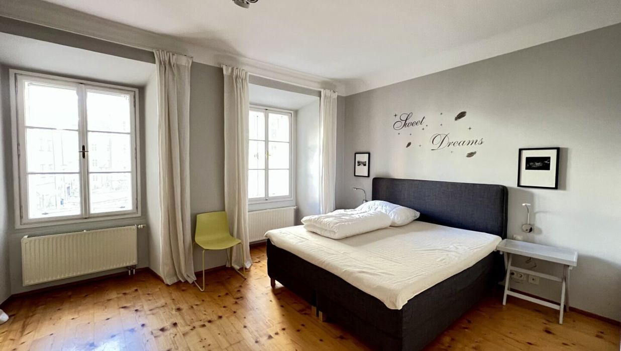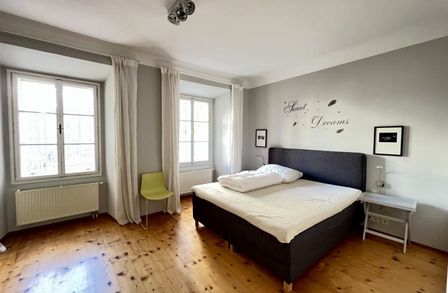 Die bezaubernde 3-Zimmer-Wohnung mit einem Schlafzimmer und einem Kinder/Gästezimmer oder Büro befindet sich im 1. Obergeschoß eines wunderschönen Altstadthauses aus dem 1600 Jahrhundert und teilt sich wie folgt auf: