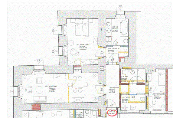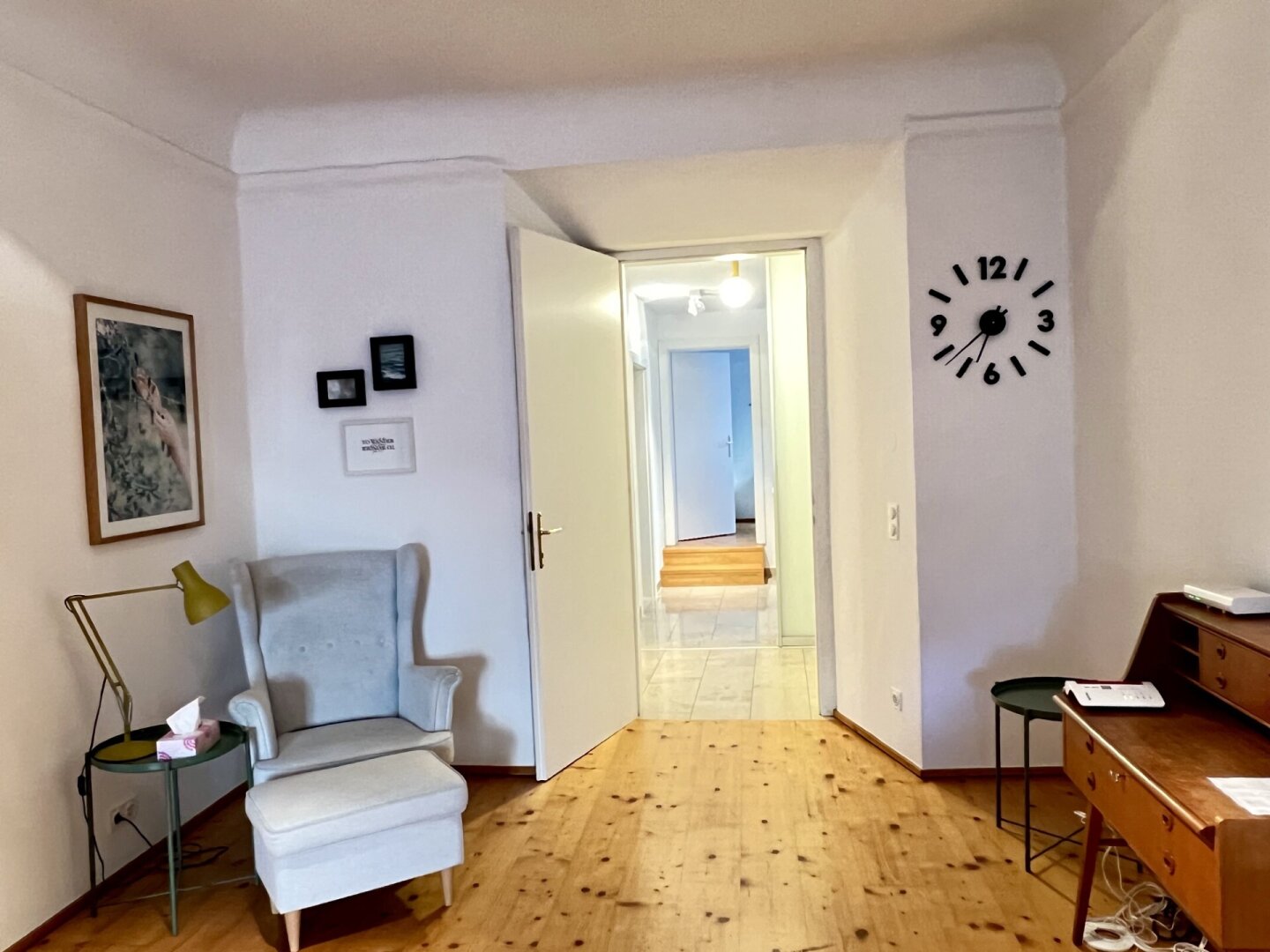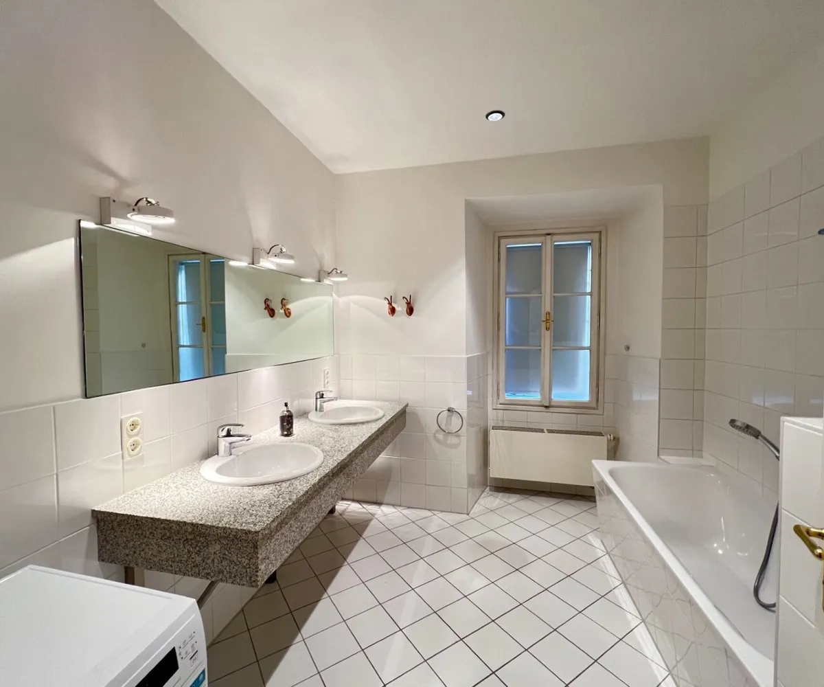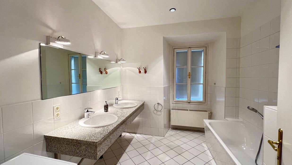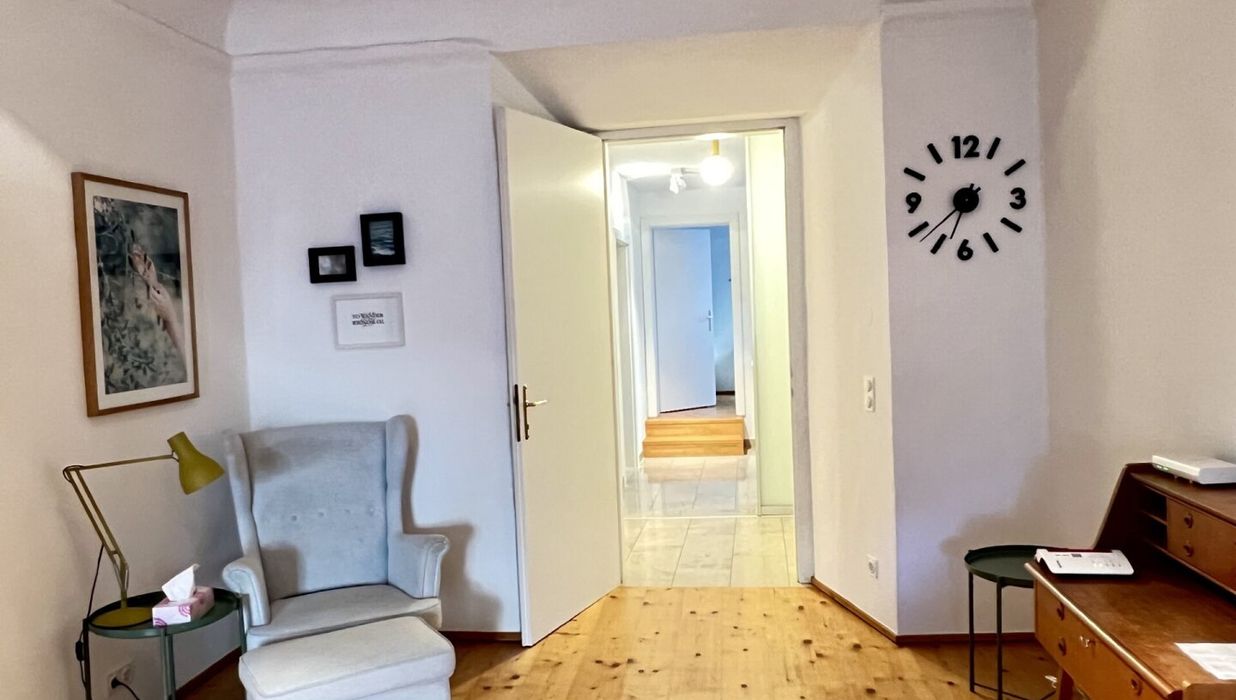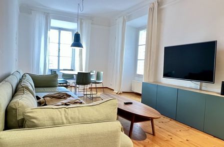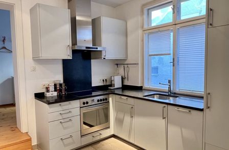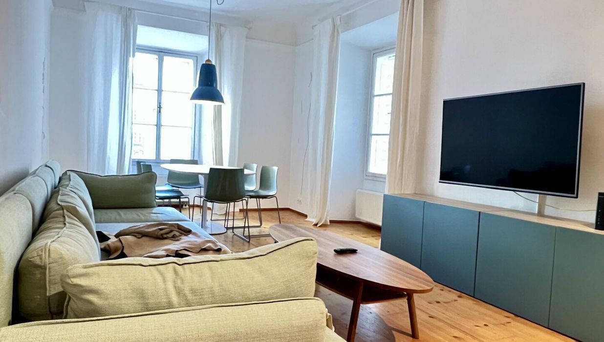 Die bezaubernde 3-Zimmer-Wohnung mit einem Schlafzimmer und einem Kinder/Gästezimmer oder Büro befindet sich im 1. Obergeschoß eines wunderschönen Altstadthauses aus dem 1600 Jahrhundert und teilt sich wie folgt auf: