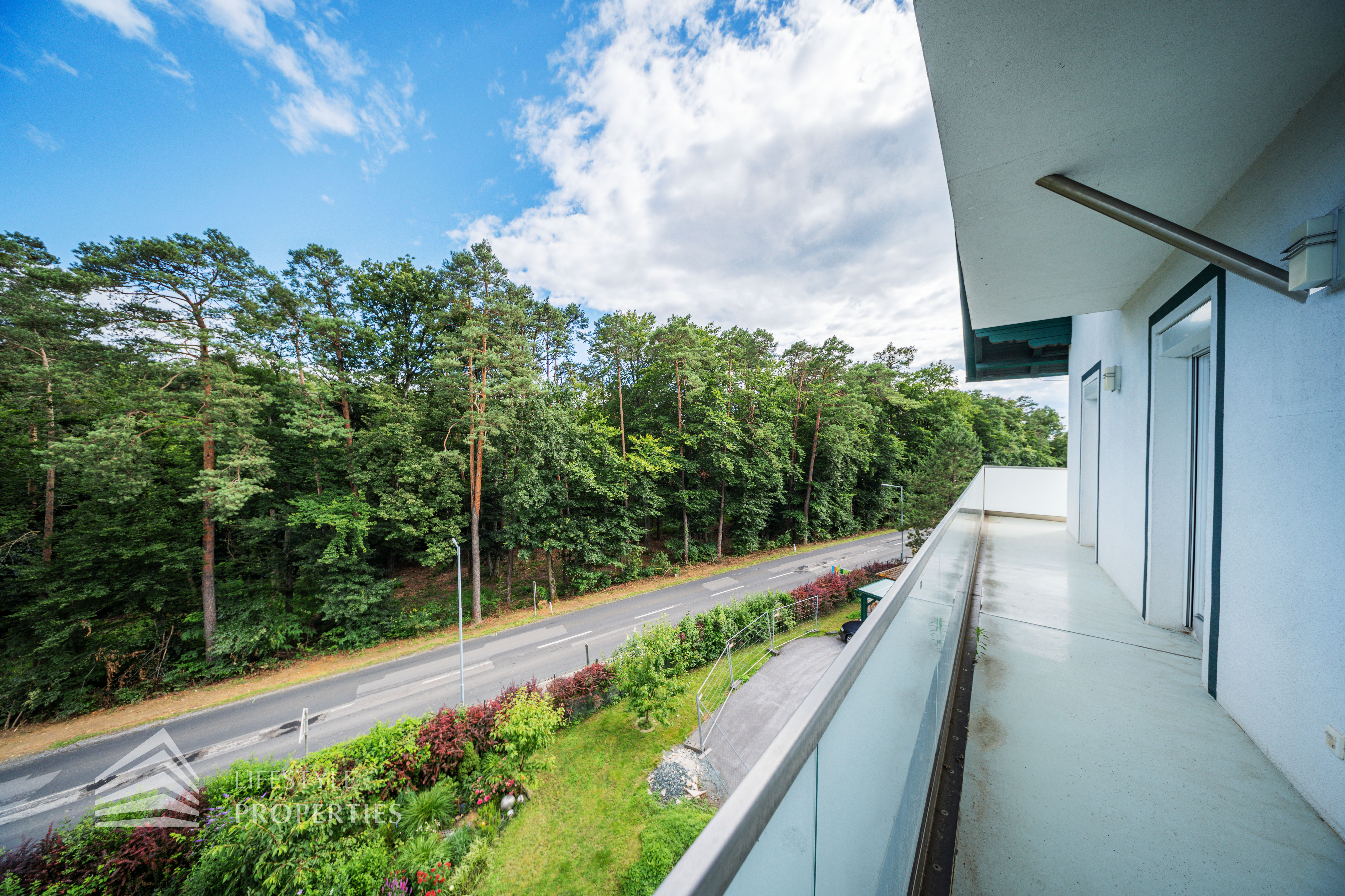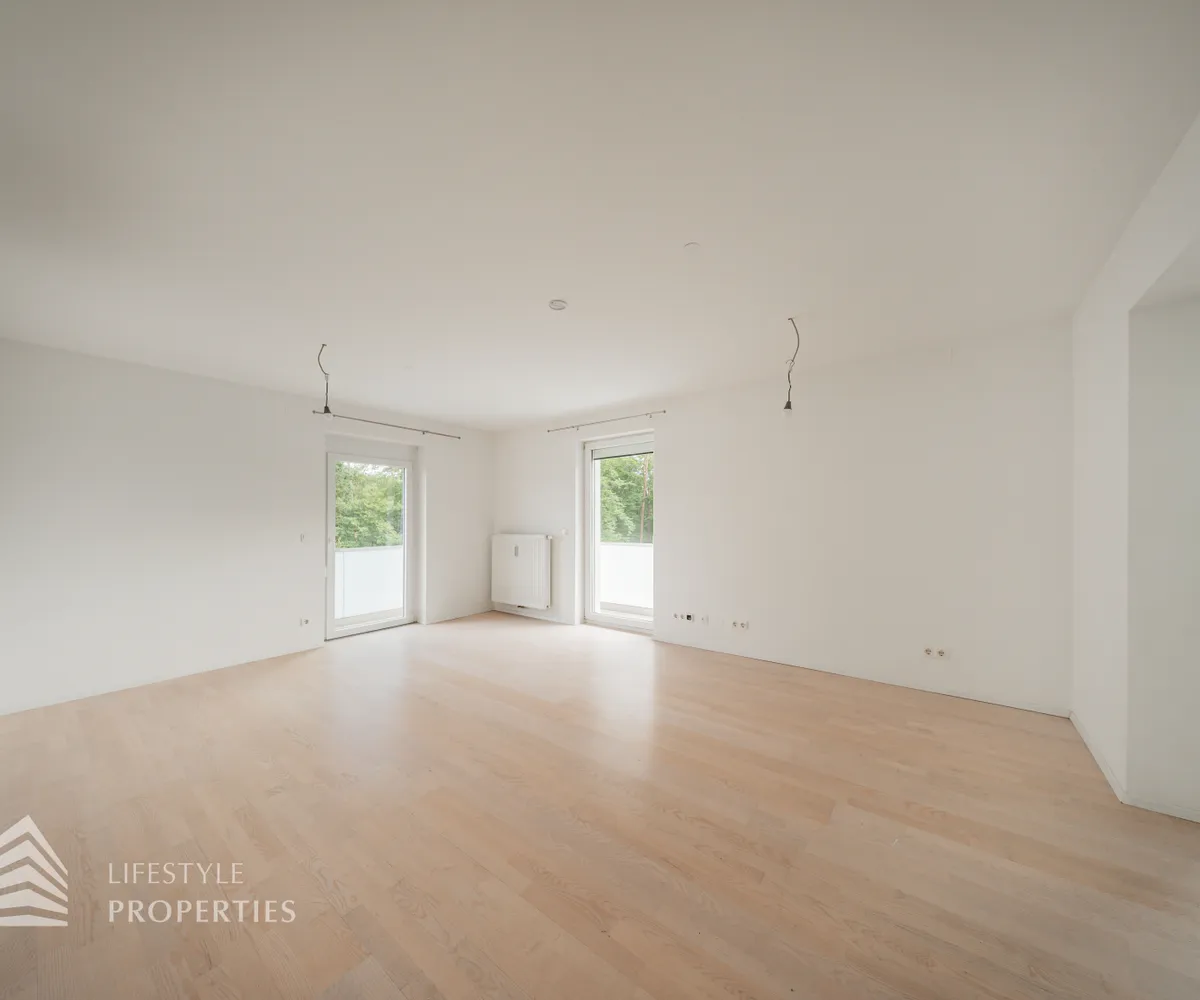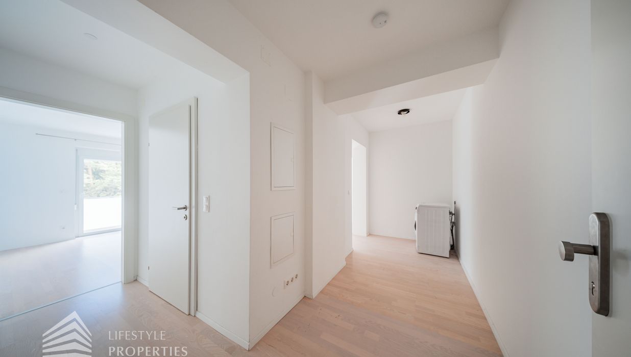 Die Immobilie befindet sich im 2. OG eines vierstöckigen Gebäudes und hat ca. 66,07 m². Sie betreten die praktisch aufgeteilte 3-Zimmer Wohnung und gelangen in einen geräumigen Vorraum mit ca. 9,71 m². Dieser bietet aufgrund seiner Größe ausreichend Platz für jegliche Garderobe. Unmittelbar auf der linken Seite finden Sie zwei Türen, welche zum Badezimmer und zum ersten Schlafzimmer der Wohnung führen. Das Badezimmer verfügt über eine Dusche, eine Toilette und einen Waschmaschinenanschluss. Das Schlafzimmer ist ca. 11,17 m² groß. Am Ende des Vorraumes führt eine weitere Tür zu einem Gang, welcher sowohl in die Wohnküche als auch zum zweiten Schlafzimmer führt. Letzteres hat ca. 8.98 m², die Wohnküche ca. 22,35 m². Die Küche ist vom Wohnbereich des Zimmers räumlich gut abgegrenzt. Eine Tür in der Küche führt zu einem kleinen aber praktischen Abstellraum, welcher sich ideal als Speisekammer anbietet. Sowohl die beiden Schlafzimmer, als auch die Wohnküche, haben einen eigenen Zugang zu dem großartigen, ca. 21,33 m² großen Balkon. Dieser stellt ohne Zweifel mit seinem Blick ins Grüne das Highlight der wunderbaren Wohnung dar. Sämtliche Zimmer sind mit einem wunderschönen Parkettboden, das Badezimmer mit hochwertigen Fliesen verlegt.