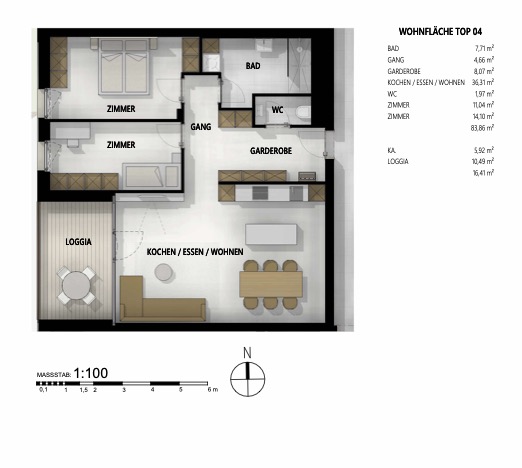 | Top 2. Etage/8 | 69,37 m2 | 23,88 m2 | 465.000 € | 3 |  | |