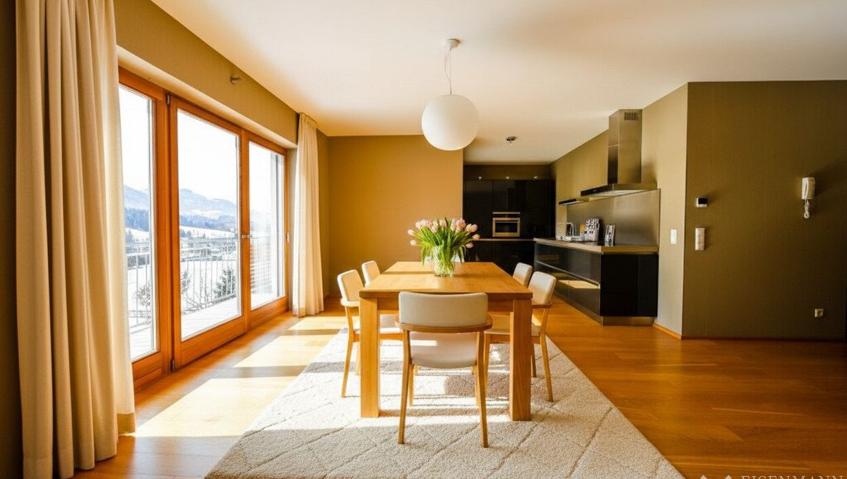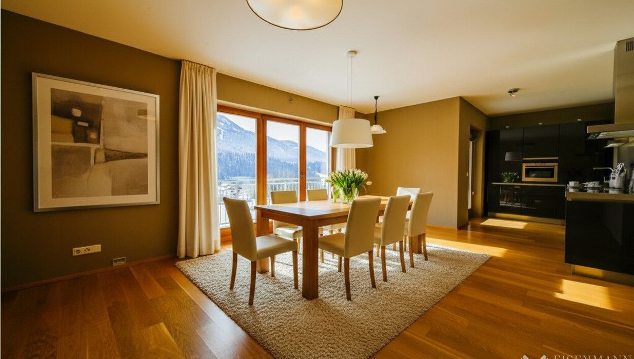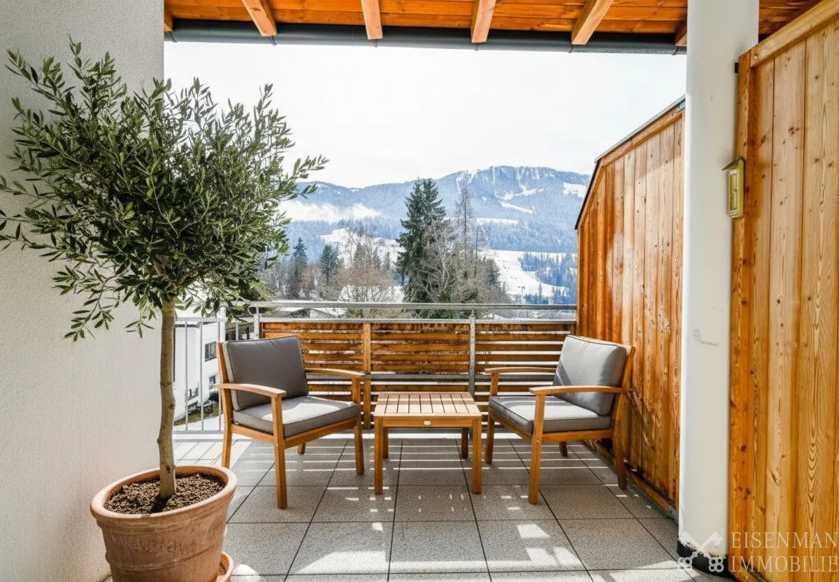 Diese exklusive Penthouse-Wohnung befindet sich in absolut sonniger Lage. Dank der erhöhten Aussichtslage genießen Sie von der großzügigen Terasse einen unverbauten Panoramablick auf die umliegende Tiroler Bergwelt. Trotz der idyllischen Lage ist das Dorfzentrum in nur wenigen Gehminuten bequem erreichbar.