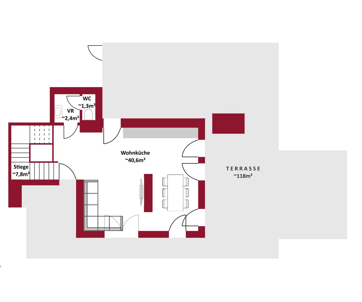 die Terrasse das stilvolle Herzstück