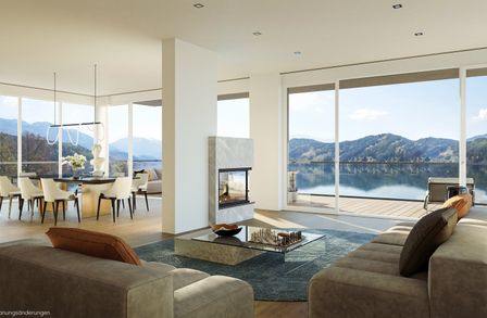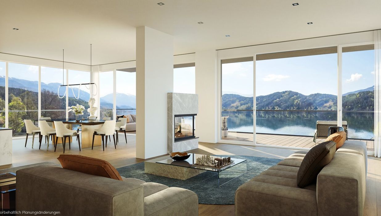 Großzügige Wohnbereiche, natürliche Materialien, edle Ausstattung, durchdachte Architektur – verbunden mit einem atemberaubenden Seeblick von jeder Ebene.