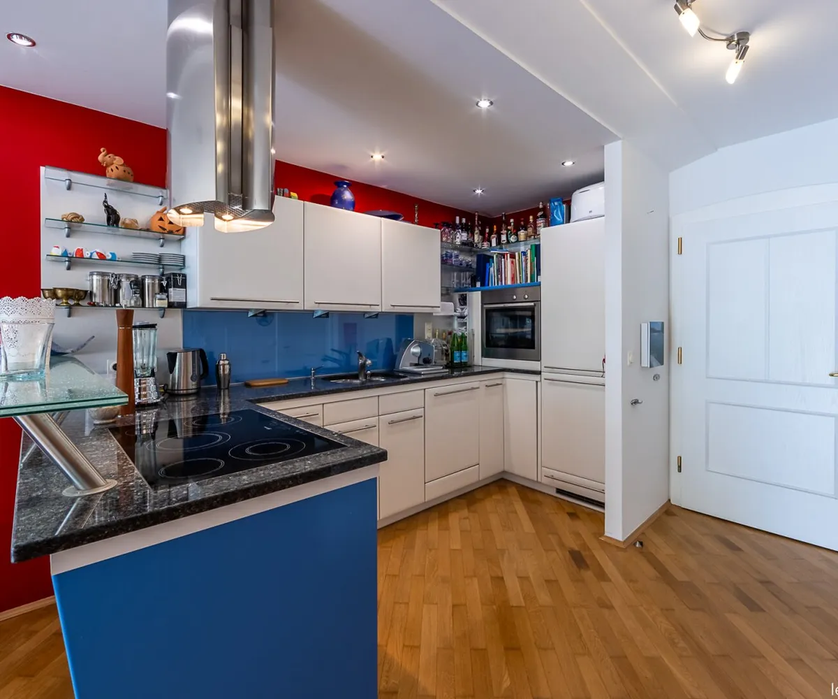 Auch die hochwertige Ausstattung der Wohnung lässt keine Wünsche offen. Die Böden sind mit Fliesen und speziellem Parkett verlegt, der für ein gemütliches Ambiente sorgt. Für wohlige Wärme sorgt die verbaute Fußbodenheizung . Eine moderne, offene Wohnküche ist bereits vorhanden, ermöglicht Ihnen ein komfortables Kochen und anschließendes Genießen. Der Personenaufzug bringt Sie bequem in die 2. Etage.