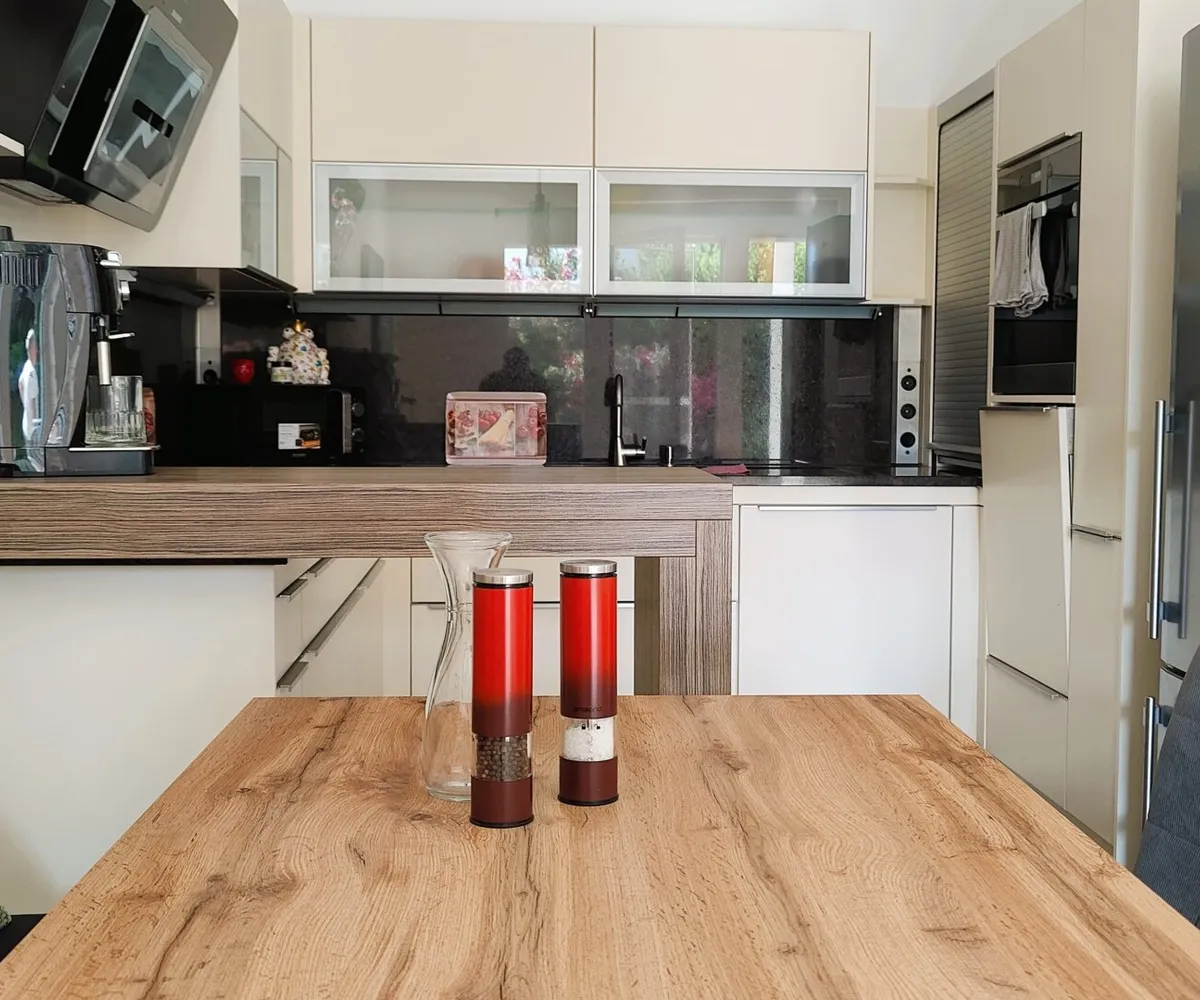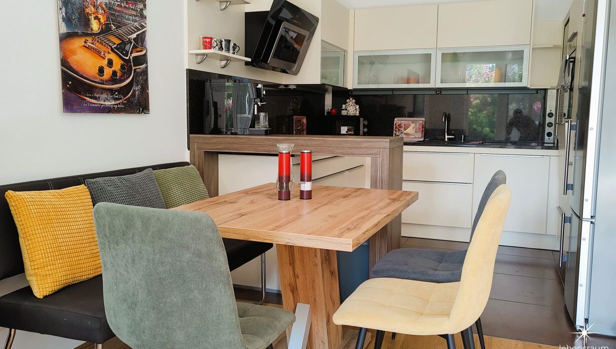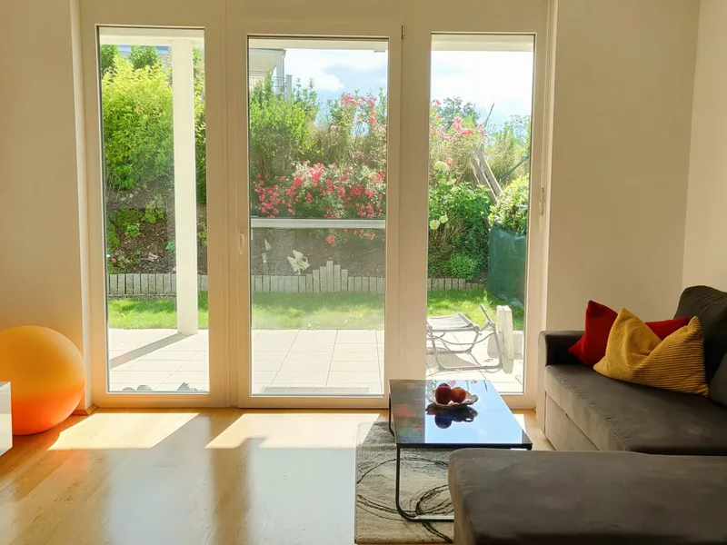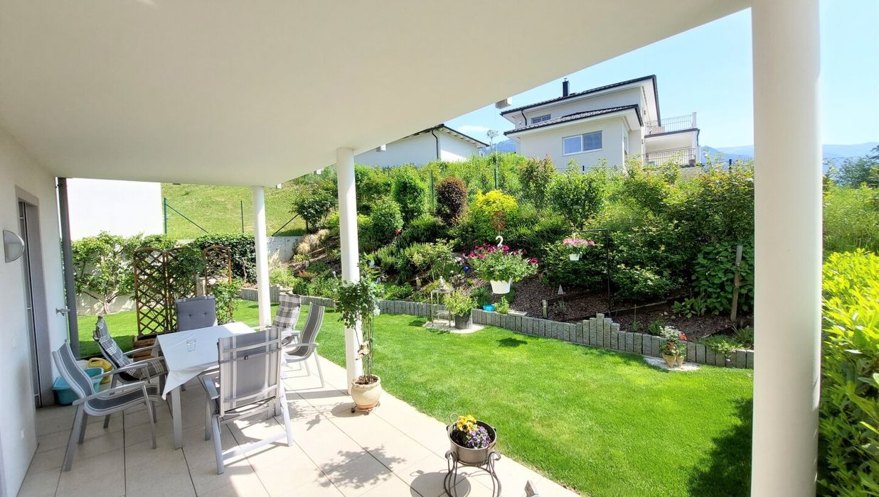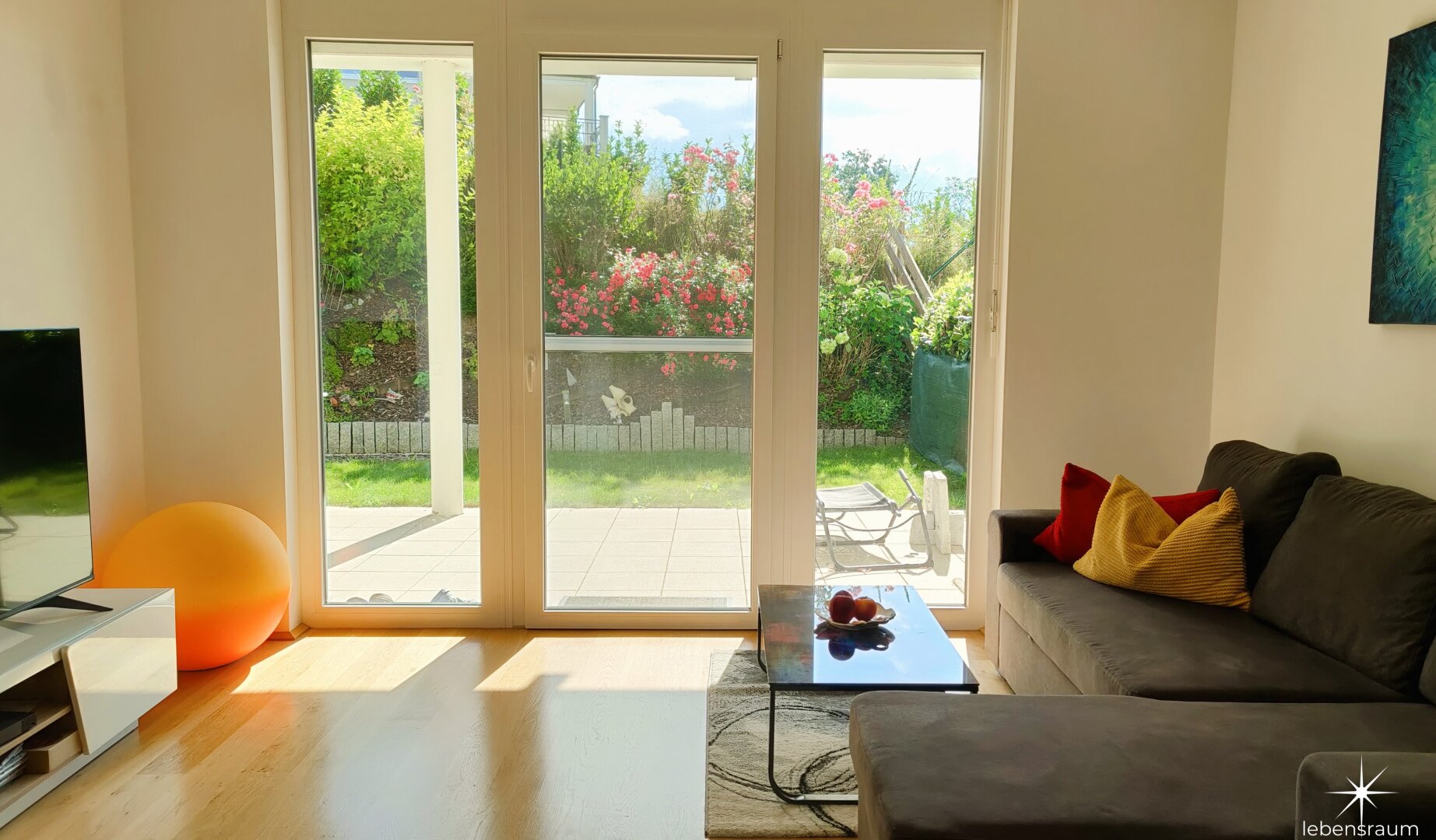 Die offene Wohnküche mit Dan-Markenküche und Miele Einbaugeräten geht fließend in den Wohnbereich mit stylischem Holzofen inkl. Feuerkegelsichtfenster über, von welchem man direkt auf die schöne Terrasse und in den gepflegten Garten gelangt. Die ebene Gartenanlage mit separatem Blumengarten genießt hohe, uneinsehbare Privatsphäre und bietet großzügige Möglichkeiten zum Relaxen und Grillen. Bestehendes Gartenhäuschen für Grill- und Gartenutensilien vorhanden. Hier kann man seine Freizeit genießen und die Seele baumeln lassen.