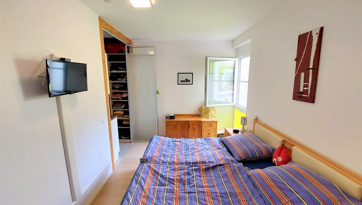 Bei einem Schlafzimmer wird kein Kasten mehr benötigt, da dieses mit einem begehbaren Ankleideraum inkl. Waschmaschinen- und Trockneranschluss ausgestattet ist. Der Ankleideraum ist über ein Glas-Schiebeelement vom Schlafbereich trennbar.