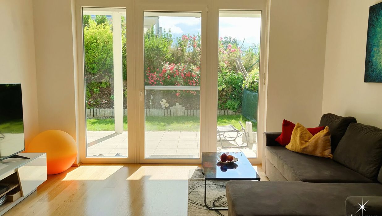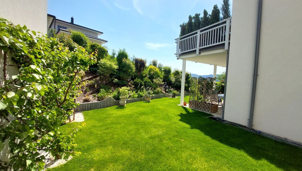 Die offene Wohnküche mit Dan-Markenküche und Miele Einbaugeräten geht fließend in den Wohnbereich mit stylischem Holzofen inkl. Feuerkegelsichtfenster über, von welchem man direkt auf die schöne Terrasse und in den gepflegten Garten gelangt. Die ebene Gartenanlage mit separatem Blumengarten genießt hohe, uneinsehbare Privatsphäre und bietet großzügige Möglichkeiten zum Relaxen und Grillen. Bestehendes Gartenhäuschen für Grill- und Gartenutensilien vorhanden. Hier kann man seine Freizeit genießen und die Seele baumeln lassen.