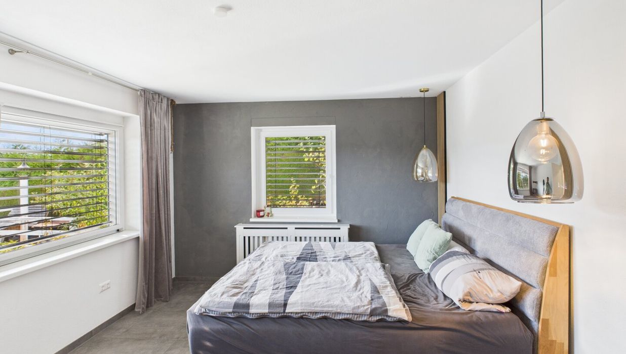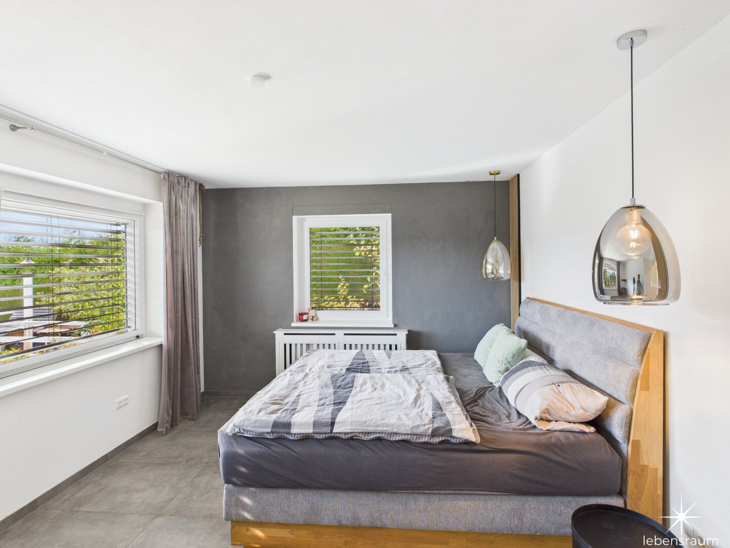 Neben dem geräumigen und sonnendurchfluteten Wohnbereich , verfügt die Wohnung über ein schönes Schlafzimmer mit separat begehbarem Ankleideraum .