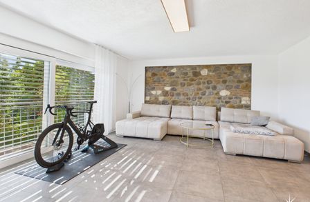Der östliche Bereich der Terrasse (ca. 50 m²) wird aktuell noch für die Solarpanele verwendet und steht dem Käufer als zukünftige Terrassenfläche zur Verfügung, die unter Einhaltung der baurechtlichen Rahmenbedingungen auch für die Schaffung eines zusätzlichen Raums vorgesehen ist.