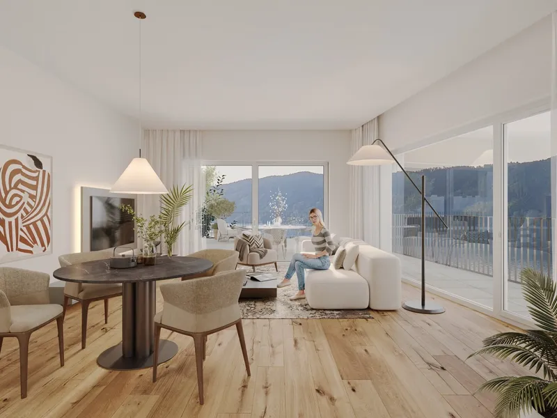 Im Baukörper A wurde vier traumhafte Gartenwohnungen, weitere vier hochwertige Obergeschosswohnung sowie auch drei exklusive Penthouse-Wohnungen mit einem idyllischen See- und Bergpanoramablick errichtet.