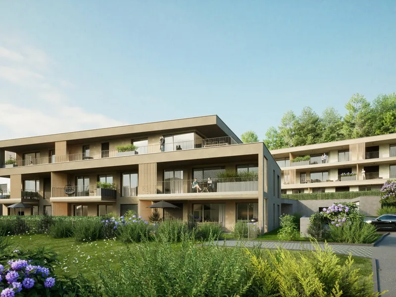 3-Zimmer-Wohnung mit moderner Ausstattung und privater Dachterrasse (19 m²). Sonnige Ausrichtung nach Süd-West und unverbaubarer Blick ins Lieseregg.