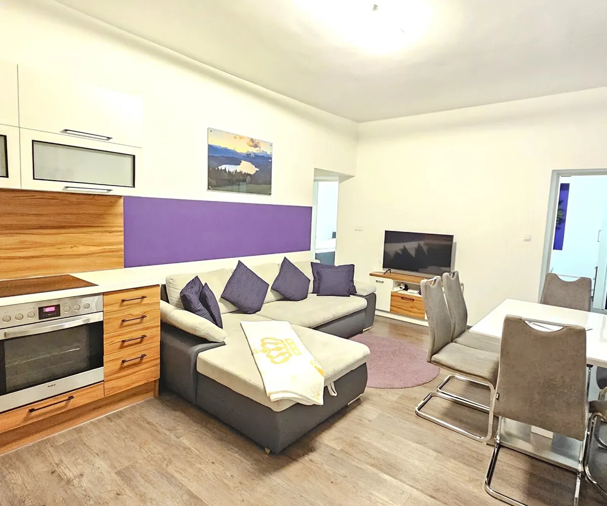 Diese 3 Zimmer Wohnung wird vollausgestattet und vollmöbliert verkauft. Dies versteht sich inklusive Inventar (zb.: Geschirr, Bettwäsche, Handtücher, Polster, Decken, etc.). In der Wohnküche wurde eine maßgefertigte Tischlerküche eingebaut mit Geschirrspüler, Backrohr, Ceranfeld (induktiv), Mikrowelle und einem freistehenden Kühlschrank. Im Wohnzimmer steht ein ausziehbares Sofa mit Stauraum. Im ersten Schlafzimmer befindet sich ein Boxspringbett (180cmx200cm) mit Stauraum und ein Kleiderschrank. Im zweiten Schlafzimmer stehen 2 Einzelbetten und ein Kleiderschrank.