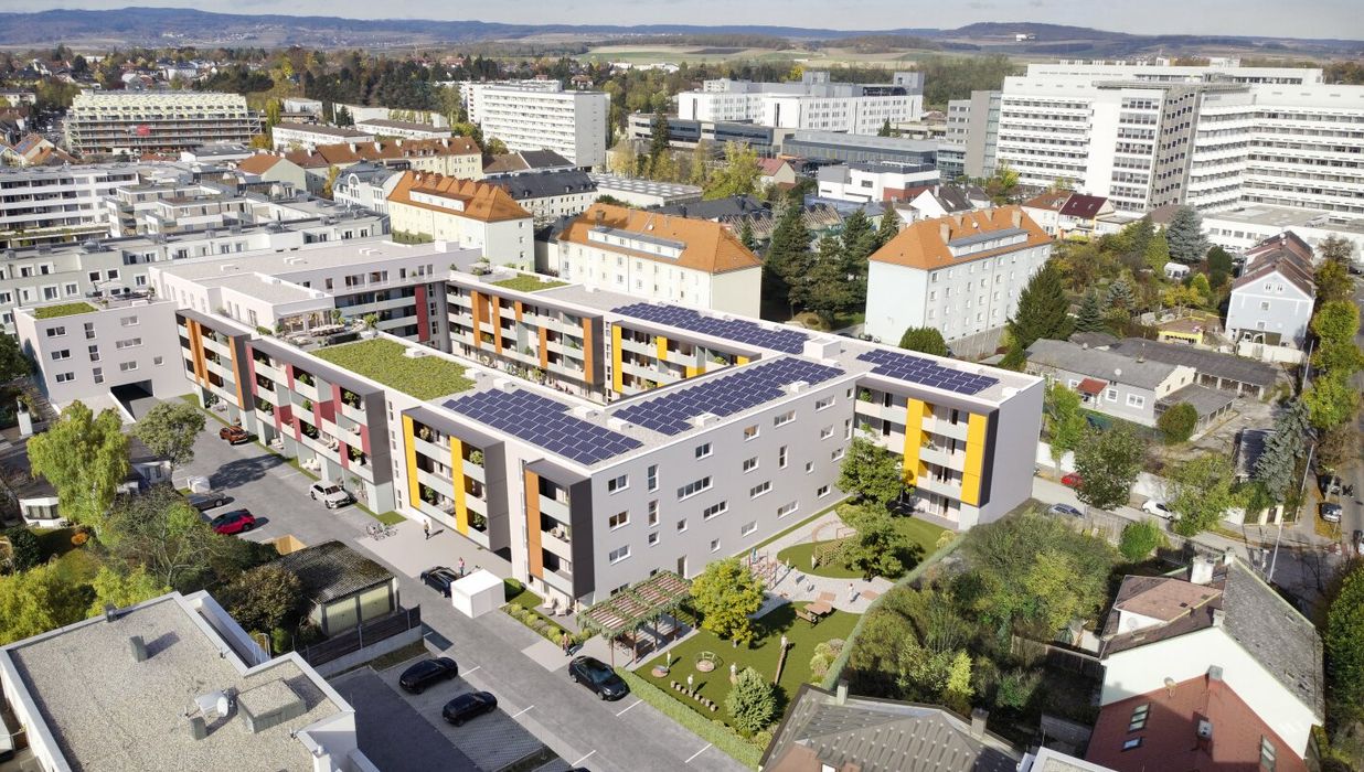 Die Lage an der Kreuzung Maximilianstraße und Kerensstraße, unweit des Hauptbahnhofs und des Universitätsklinikums St. Pölten, bietet fußläufige Erreichbarkeit der Innenstadt und beste Infrastruktur. Zum Entspannen erreichen Sie die Viehofner Seen in nur ca. 5 Autominuten. Der Kulturbezirk der Stadt, mit dem Museum Niederösterreich und dem berühmten Klangturm ist ebenso in 5 Minuten erreichbar. Der Verkehrsknotenpunkt Hauptbahnhof ist zu Fuß in weniger als 10 Gehminuten erreichbar.