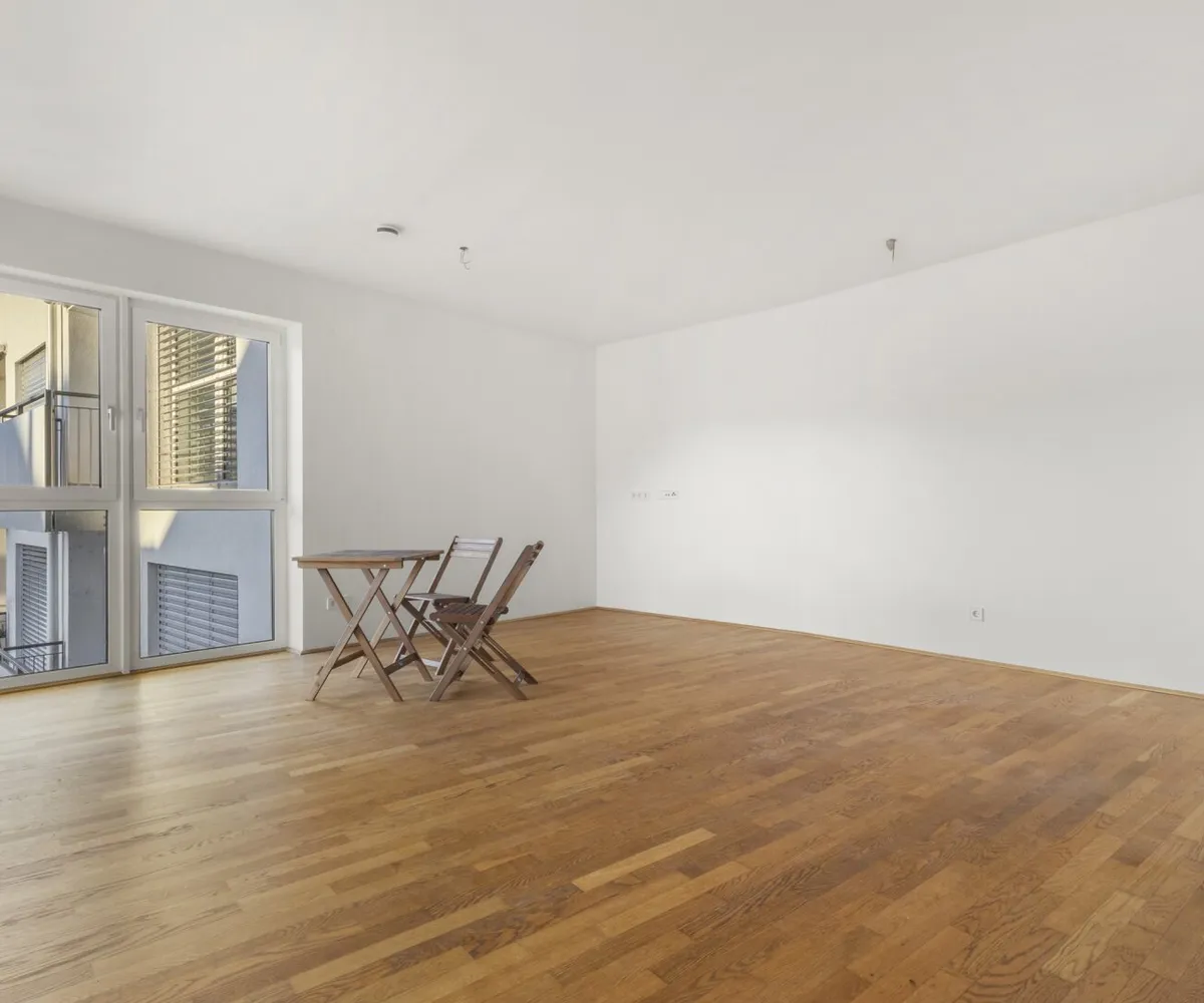Der offene Wohnraum mit direktem Zugang zur Loggia ist das Herzstück dieser Immobilie.