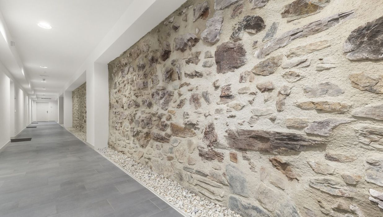 Das Haus wurde 2021 erstellt auf dem Gemäuer der alten Zeit! Das Stiegenhaus bildet diese Gemäuer teilweise noch ab.