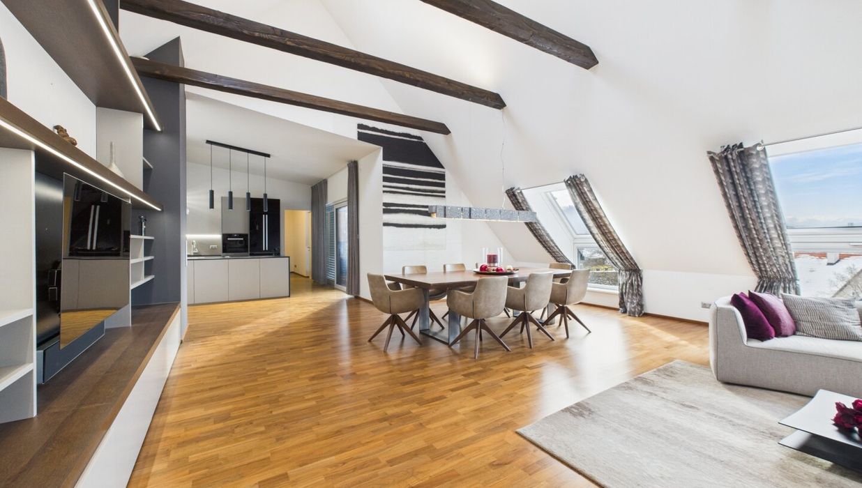 „Einziehen, ankommen, genießen: Dieses luxuriöse Penthouse wurde vom Architekten hochwertig eingerichtet und wird vollmöbliert vermietet – bereit für Ihr neues Zuhause.“