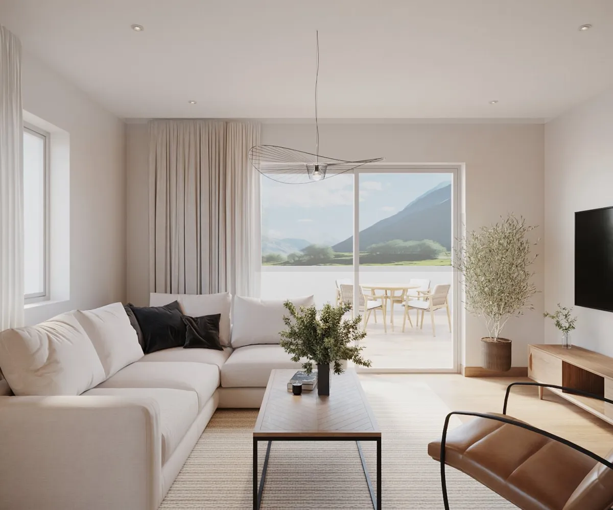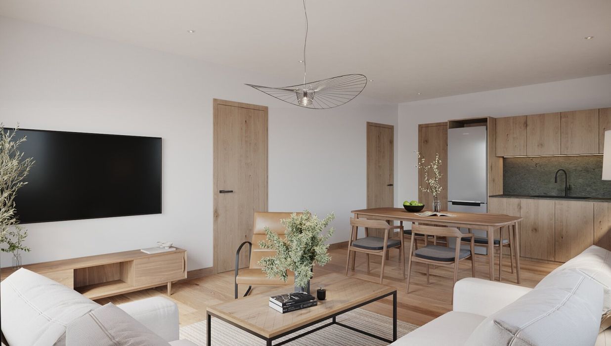 Die Wohnungen verbinden modernes Wohngefühl mit alpinem Charme. Hochwertige Materialien wie geölte Eichen-Landhausdielen, warme Naturtöne und große Fensterfronten schaffen eine Atmosphäre, die sofort Geborgenheit ausstrahlt. Die Wohnräume sind hell und offen gestaltet, mit fließenden Übergängen zwischen Kochen, Essen und Wohnen – der perfekte Rahmen für gemütliche Abende mit Familie oder Freunden. An kalten Wintertagen sorgt die angenehme