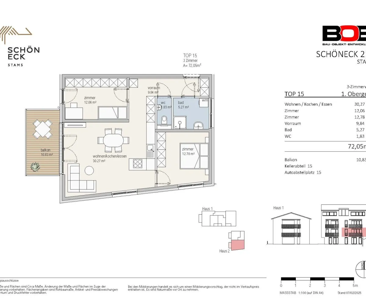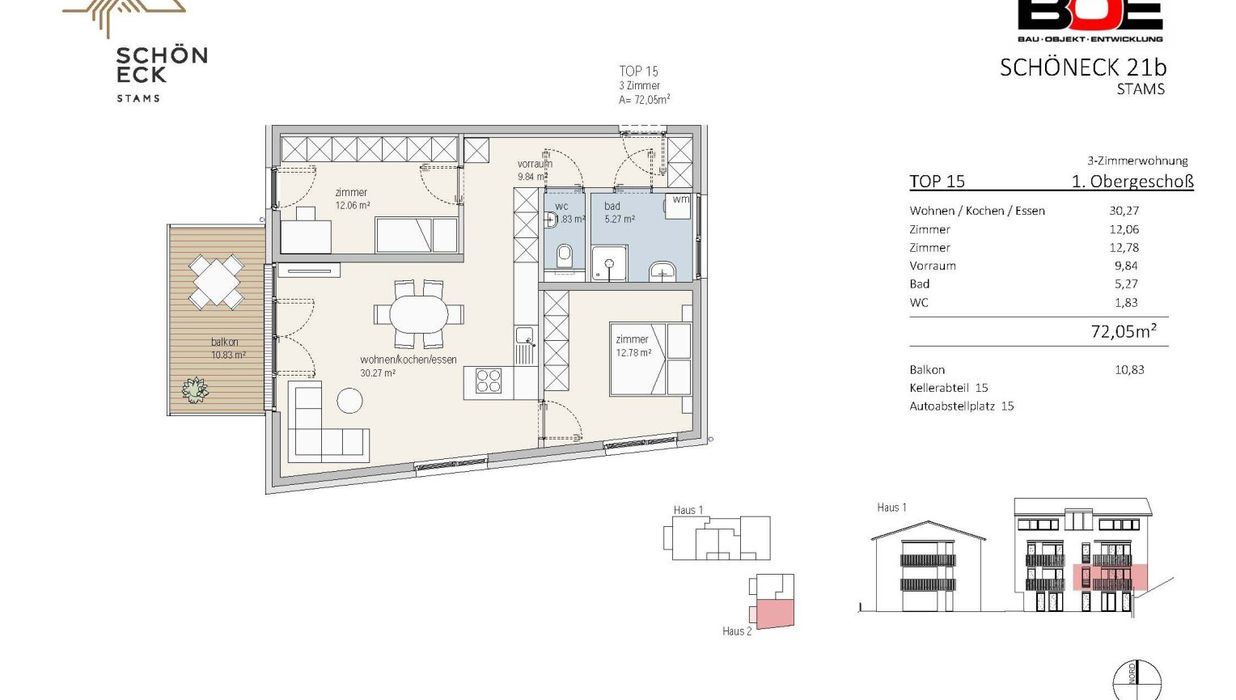 Diese großzügig geschnittene 3-Zimmer-Wohnung im 1. Obergeschoss eines modernen Neubaus in Stams überzeugt durch ihre durchdachte Raumaufteilung, viel Tageslicht und hochwertige Ausstattung.